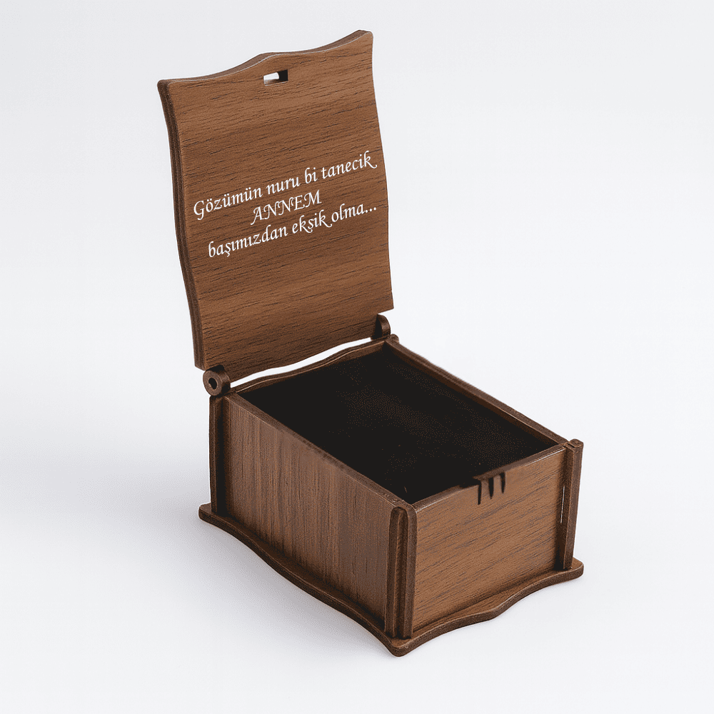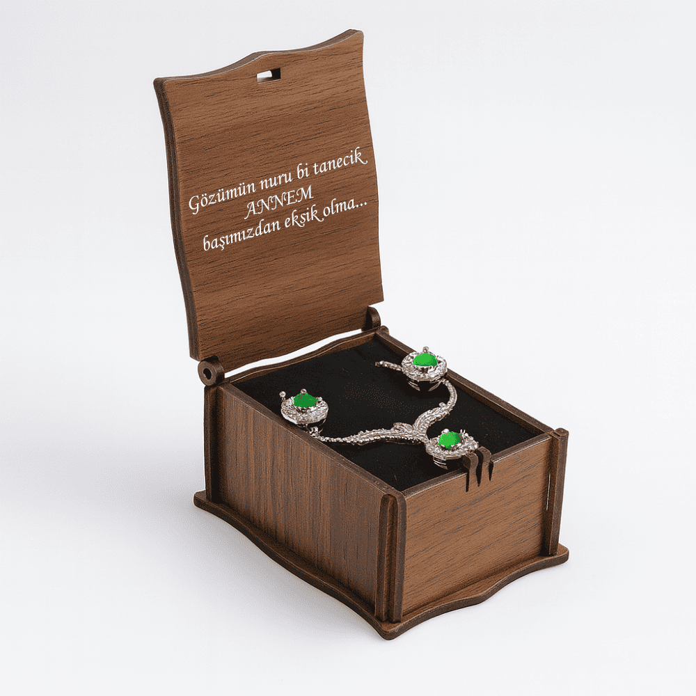 Hediye Notu Yazılı Kahverengi Ahşap Kolye Küpe Bileklik Set Hediye Takı Kutusu - M3