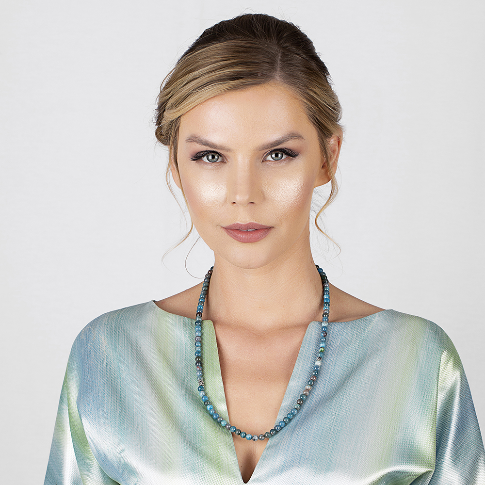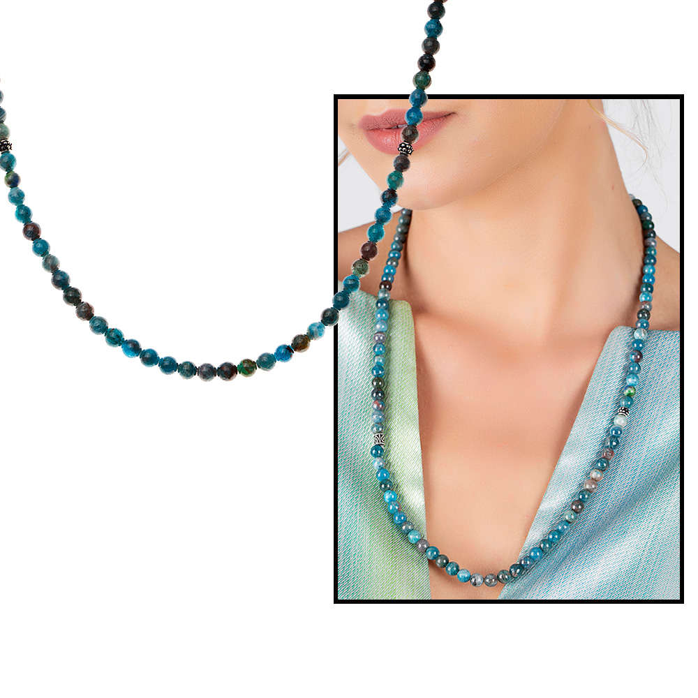 Bileklik Kolye Tesbih 3 ü 1 Arada 99 Taneli Çok Amaçlı Apatit Doğaltaş Aksesuar