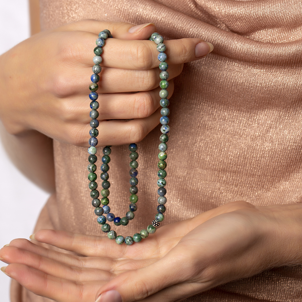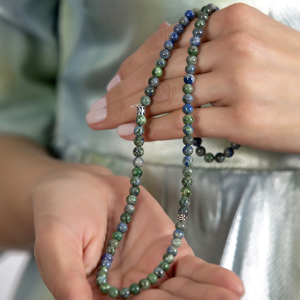Bileklik Kolye Tesbih 3 ü 1 Arada 99 Taneli Çok Amaçlı Azurite Doğaltaş Aksesuar