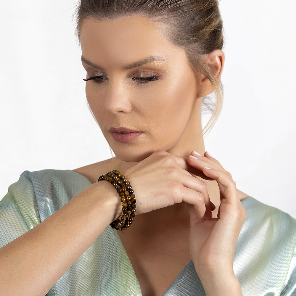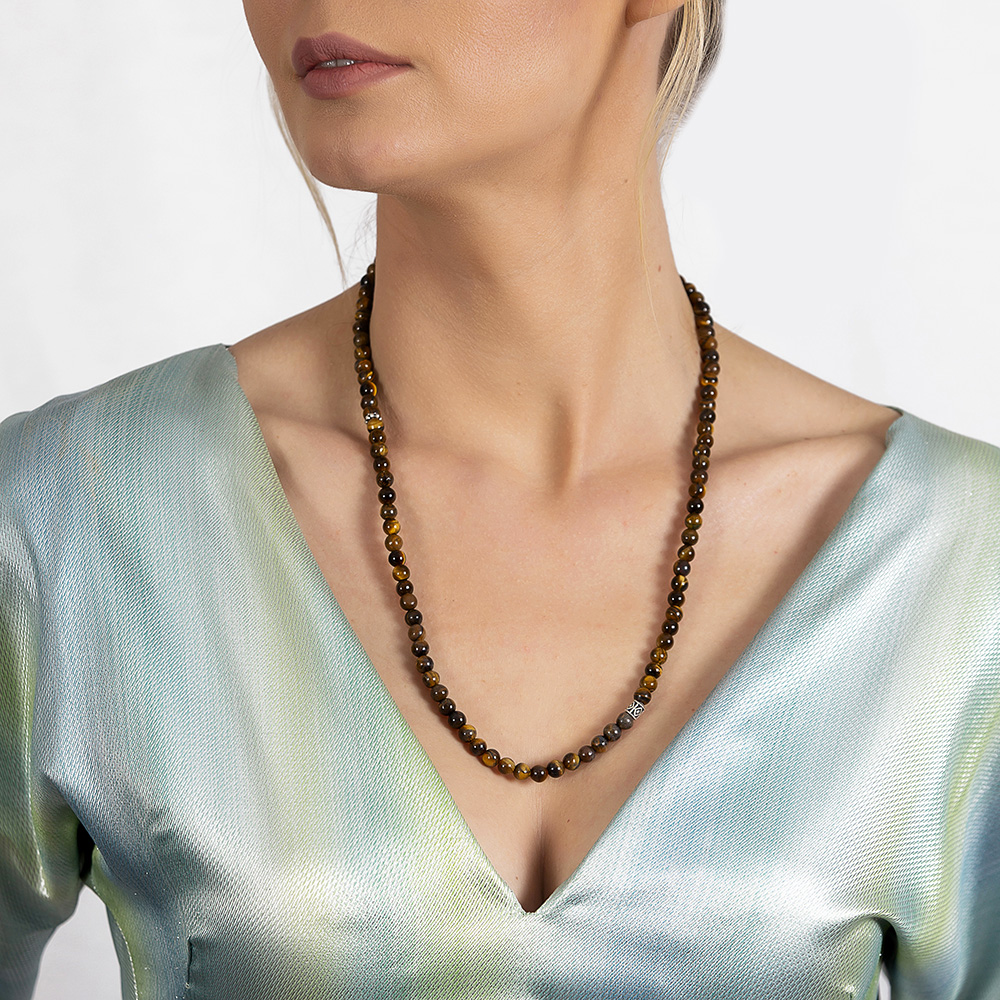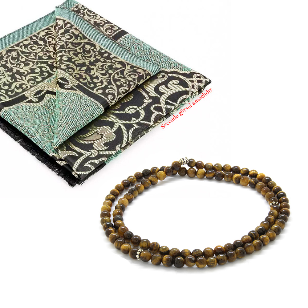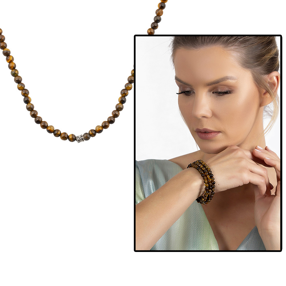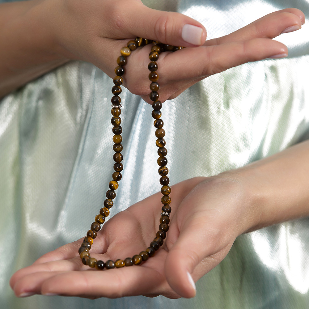 Bileklik Kolye Tesbih 3 ü 1 Arada 99 Taneli Çok Amaçlı Kaplan Gözü Doğaltaş Takı