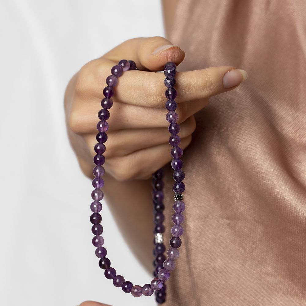 Bileklik Kolye Tesbih 3 ü 1 Arada 99 Taneli Çok Amaçlı Mor Ametist Doğaltaş Takı