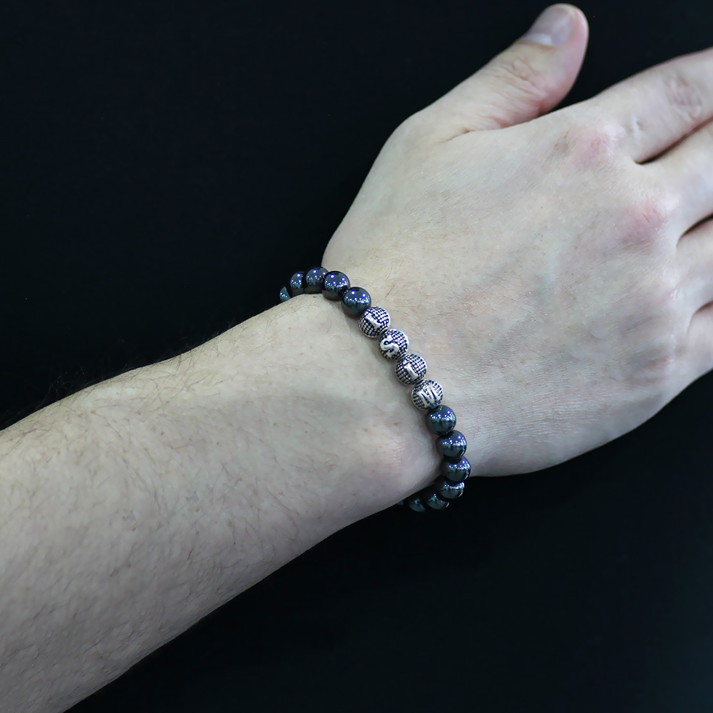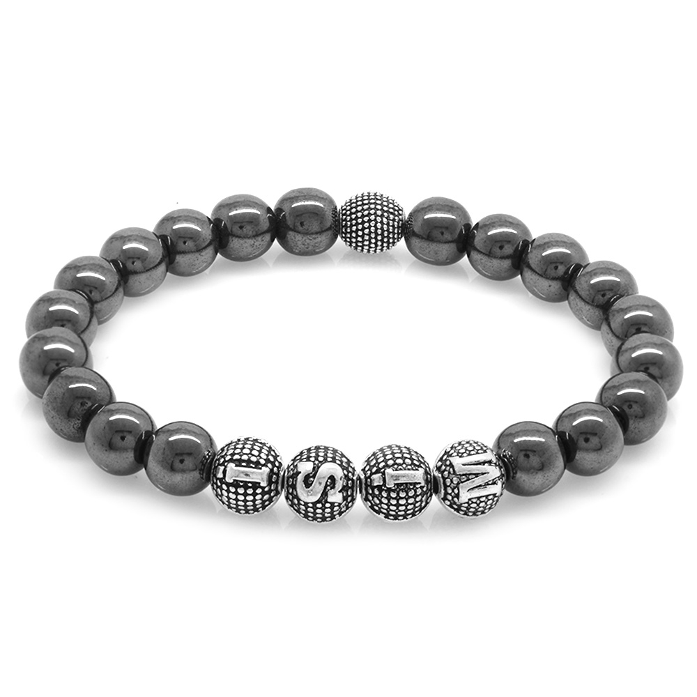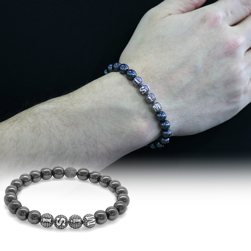 Hematit Doğaltaş Bileklik - İsme Özel Yazılı - Metal Kombinli - Küre Kesim
