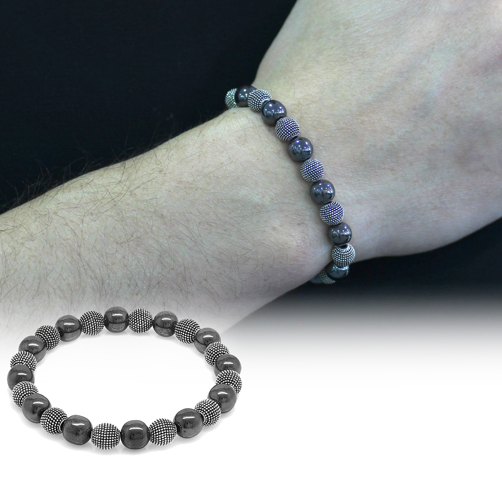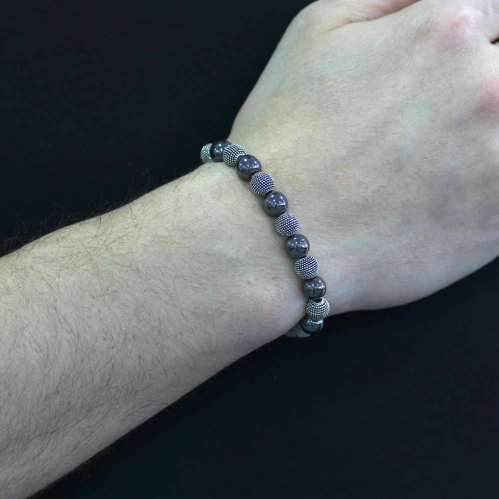 Hematit Metal Kombinli Küre Kesim Doğaltaş Bileklik