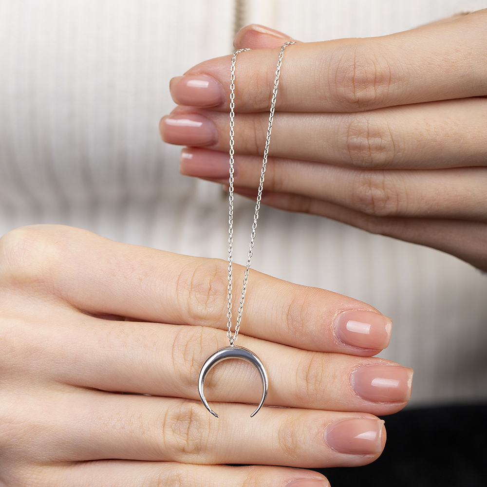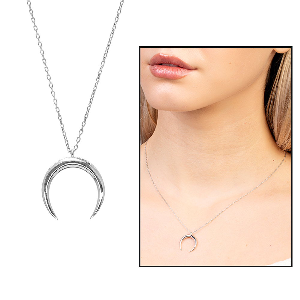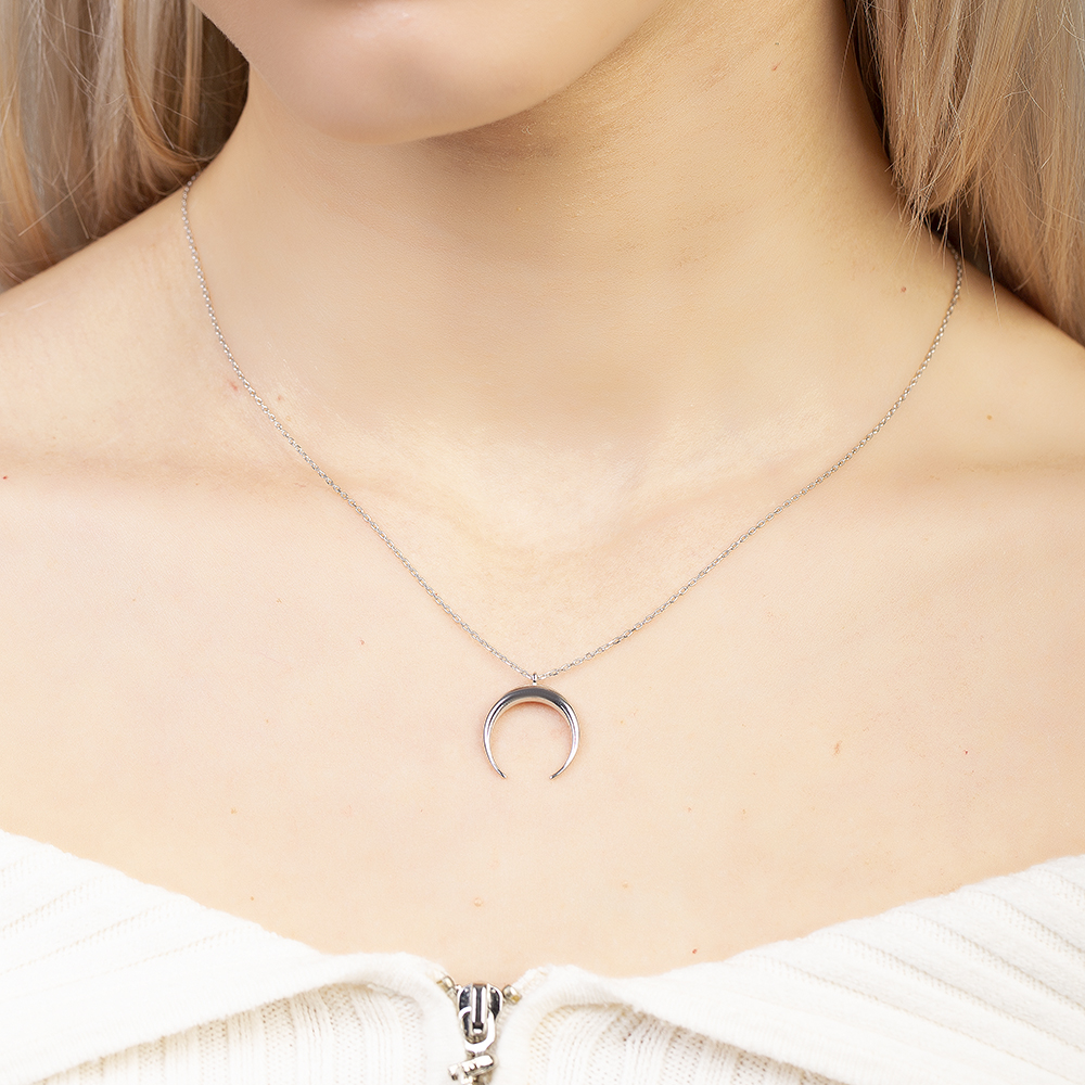 Hilal Tasarım Gümüş Renk 925 Ayar Gümüş Kadın Kolye