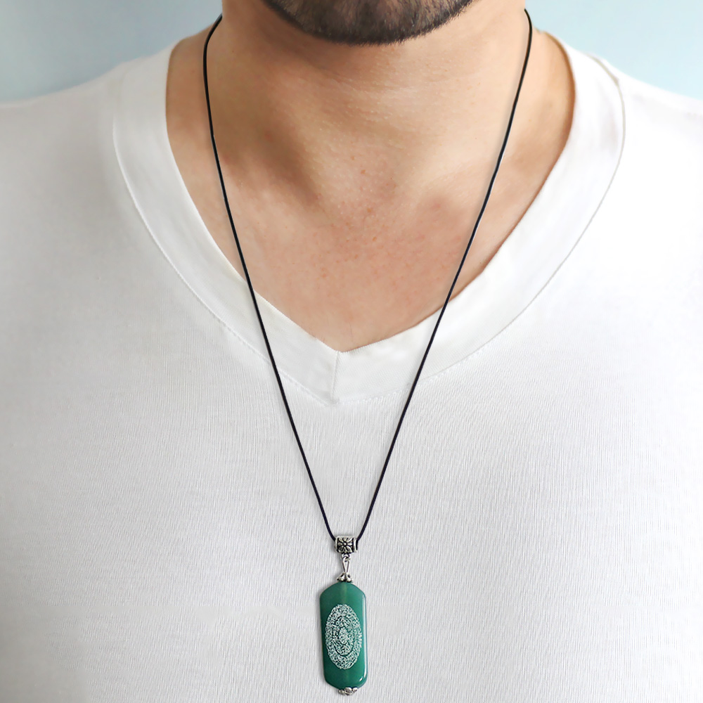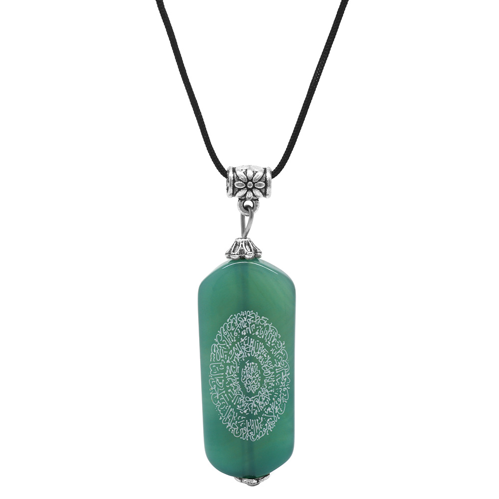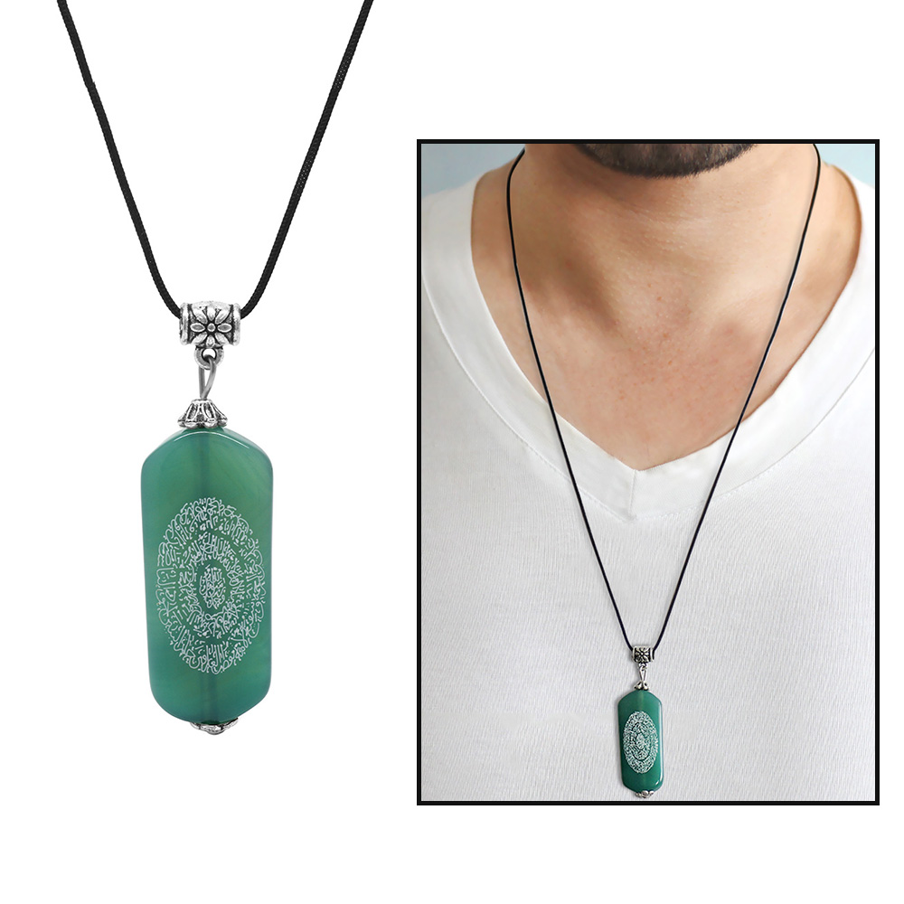 Hilyei Şerif Yazılı Haki Yemen Akik Taşı Erkek Kolye - Yemen Zırhı