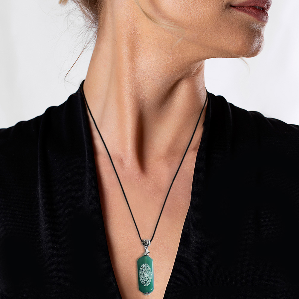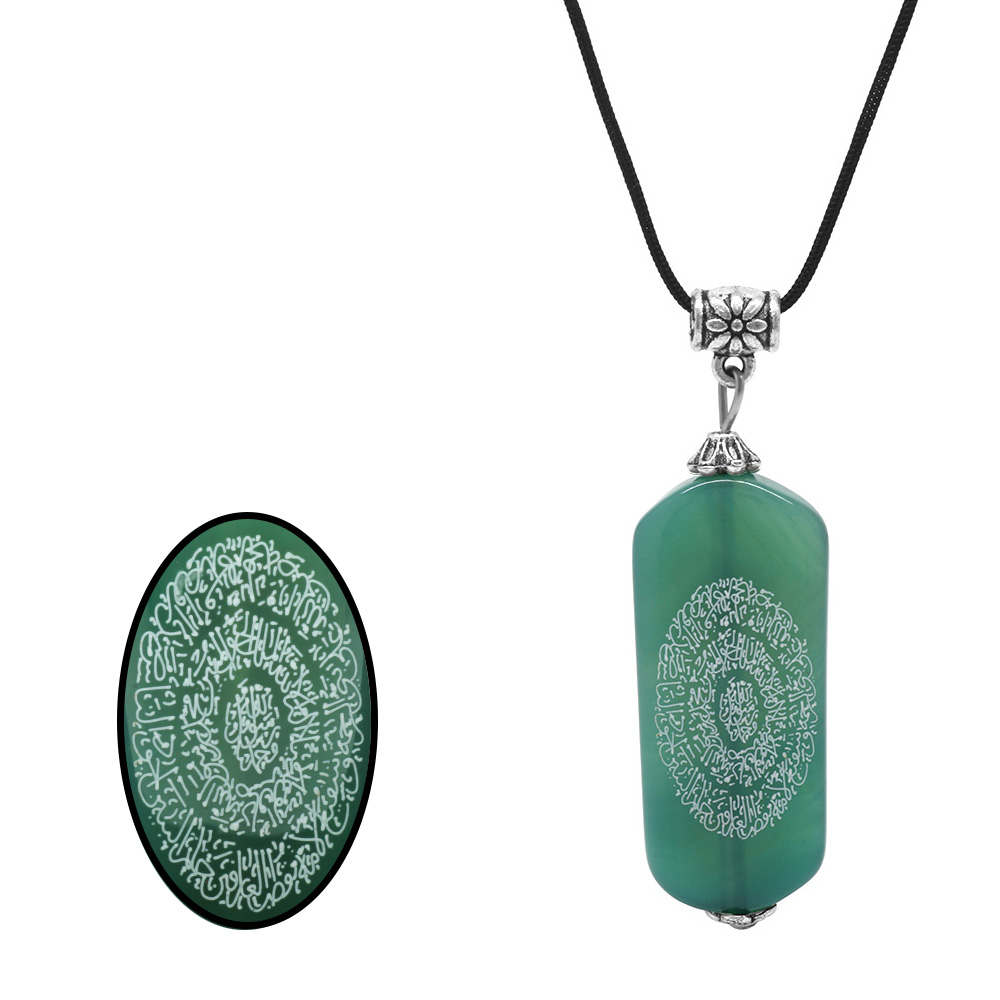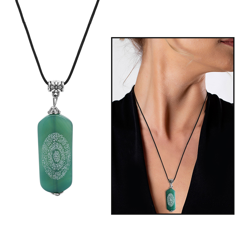 Hilyei Şerif Yazılı Haki Yemen Akik Taşı Kadın Kolye - Yemen Zırhı
