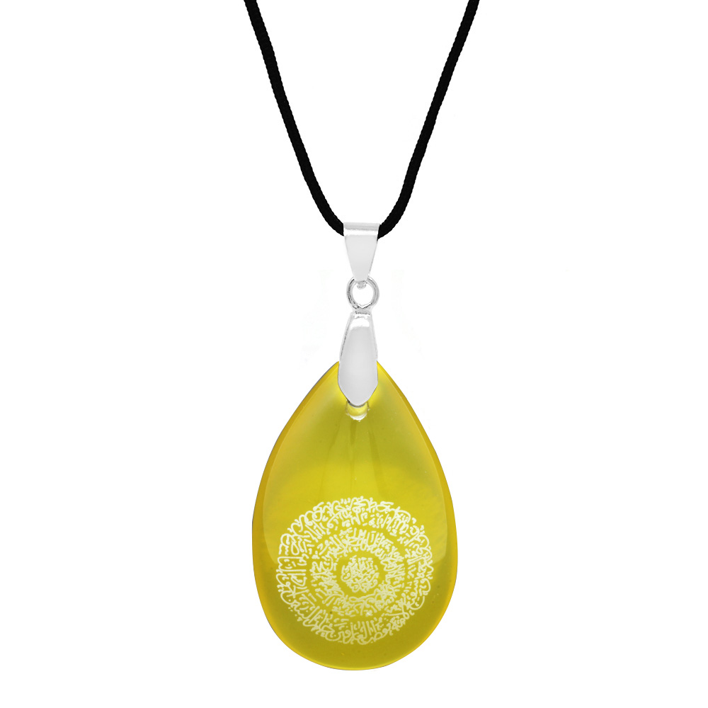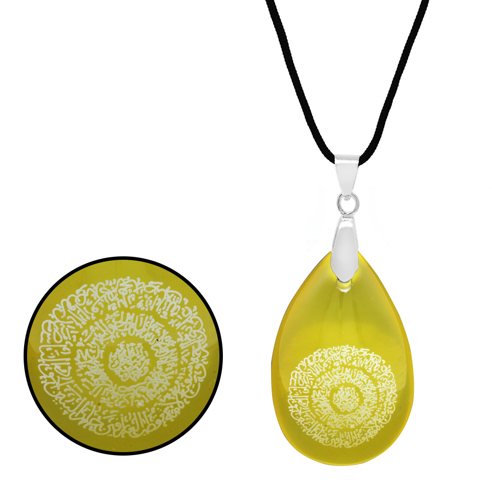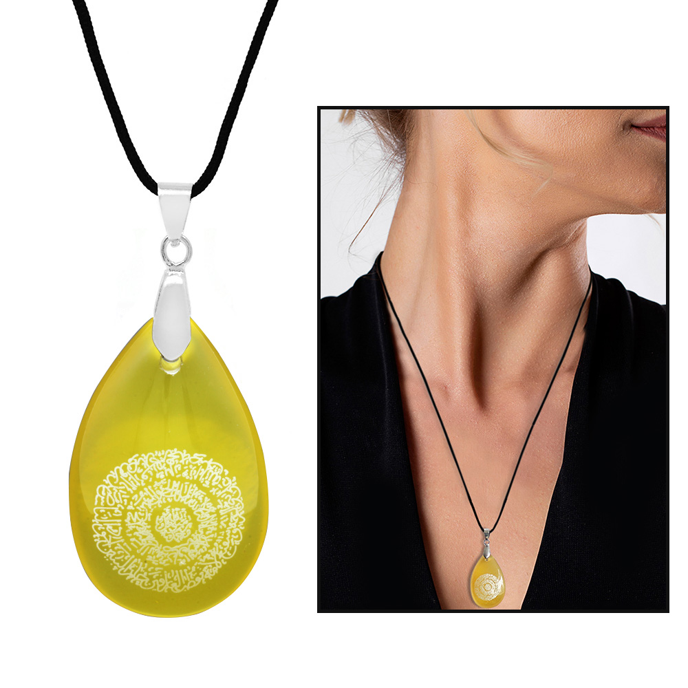 Hilyei Şerif Yazılı Sarı Yemen Akik Taşı Kadın Kolye - Yemen Zırhı