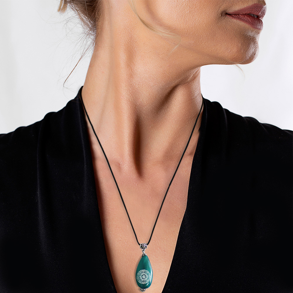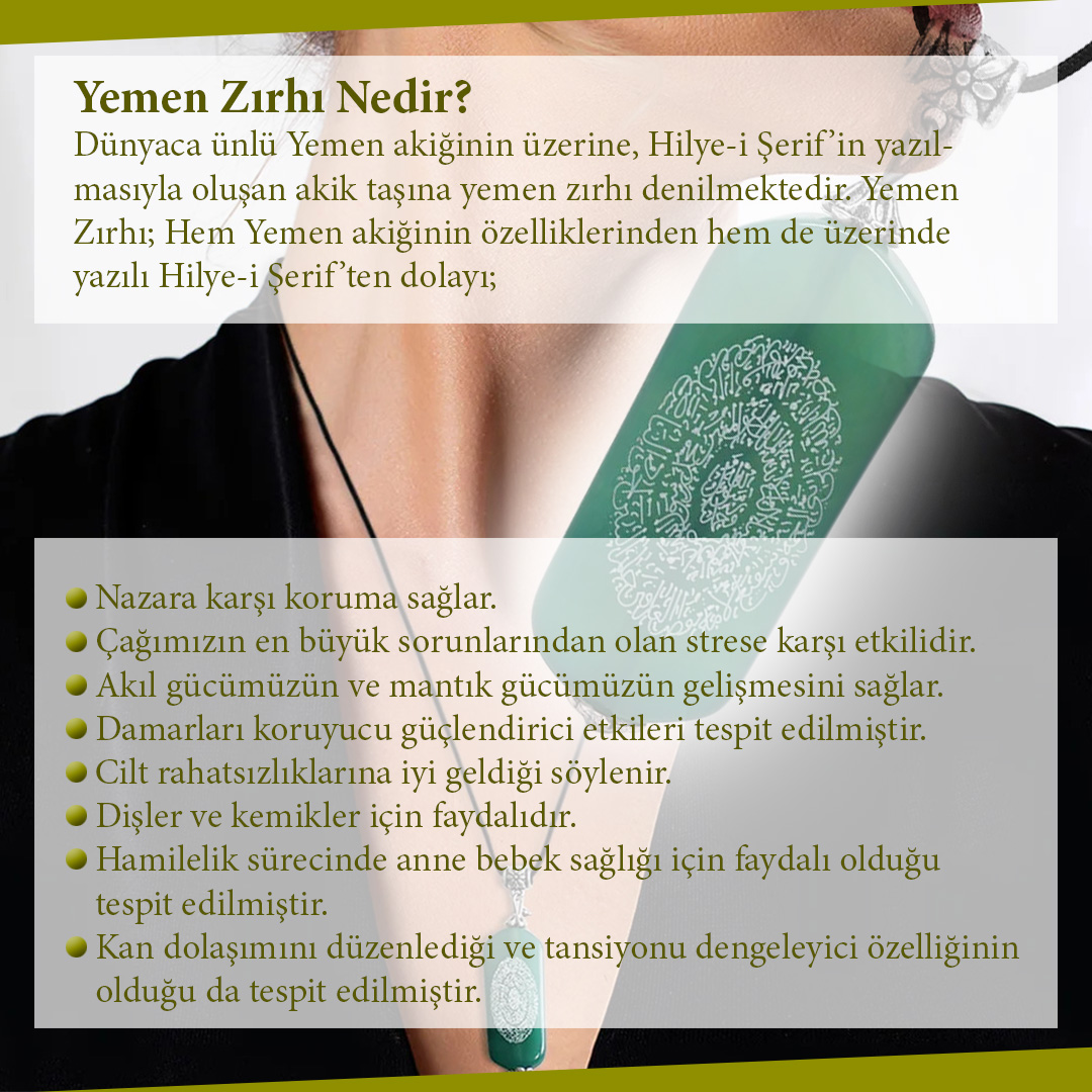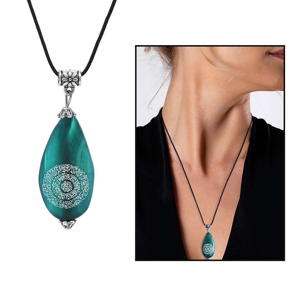 Hilyei Şerif Yazılı Turkuaz Yemen Akik Taşı Kadın Kolye - Yemen Zırhı