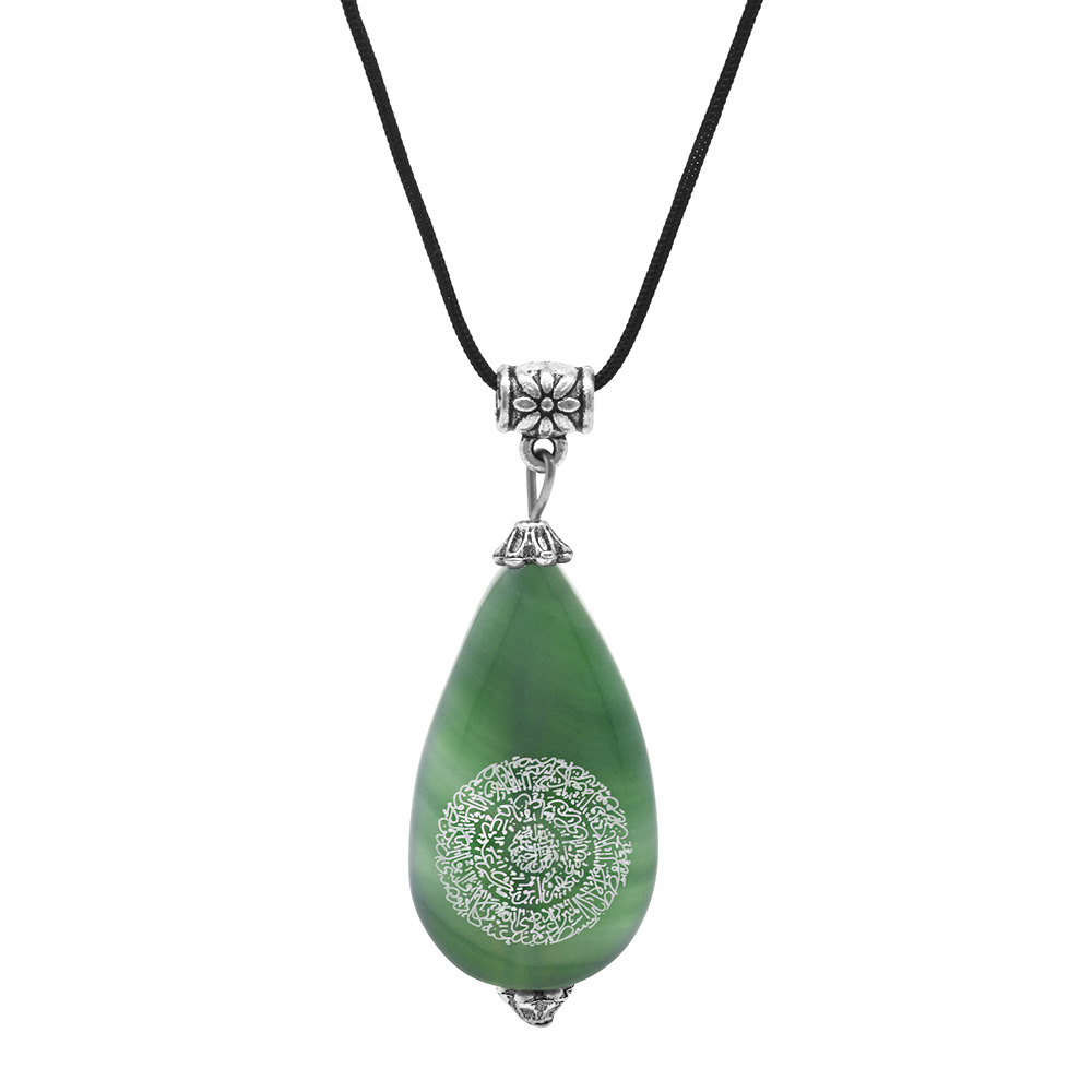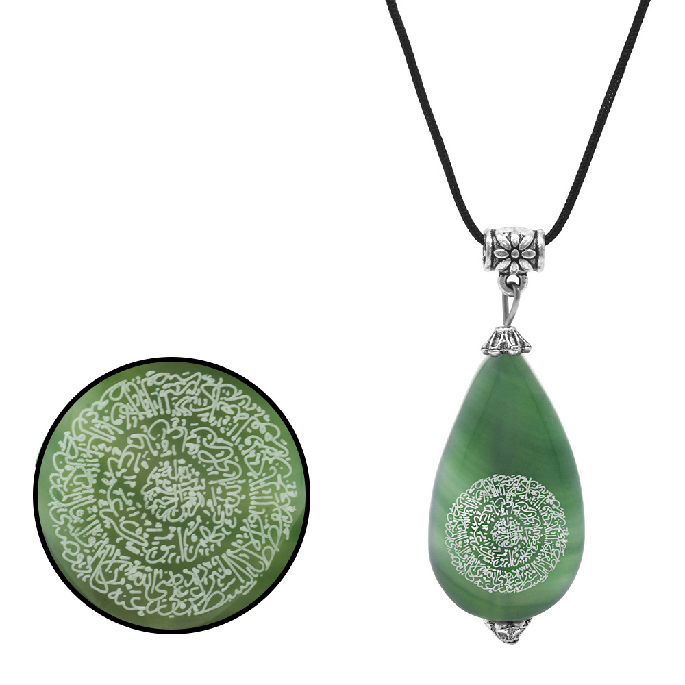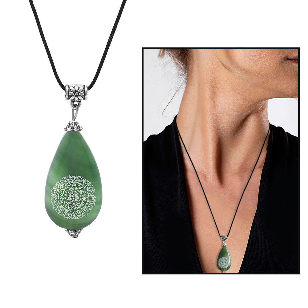 Hilyei Şerif Yazılı Yeşil Yemen Akik Taşı Kadın Kolye - Yemen Zırhı