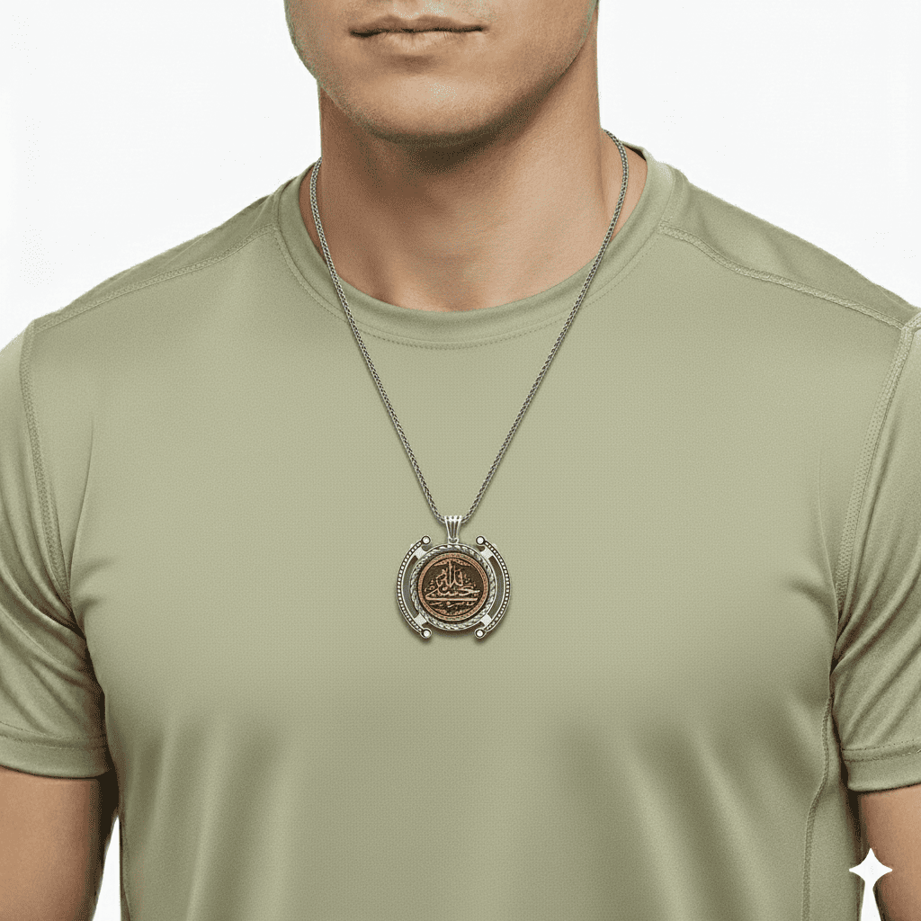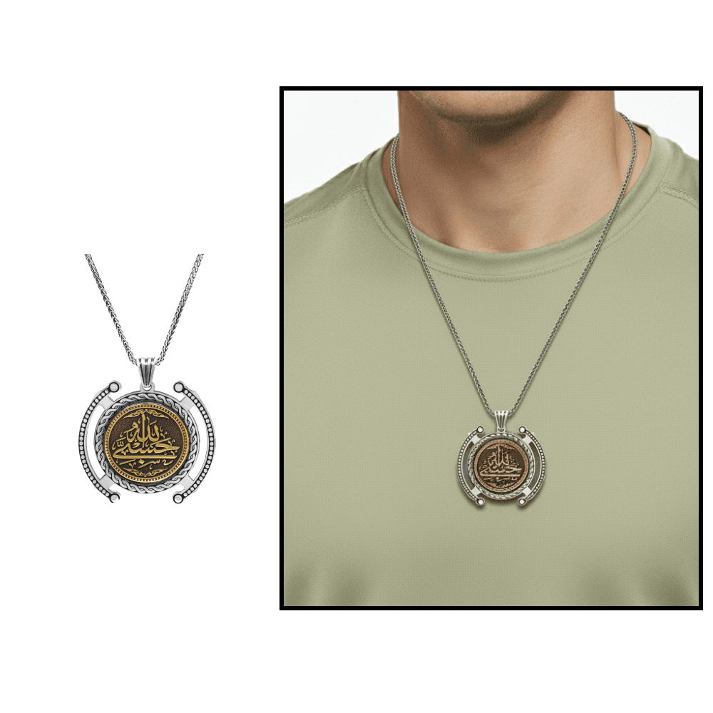 Hüsnü Hat Hasbünallah Yazılı Kalın Zincirli 925 Ayar Gümüş Madalyon Kolye