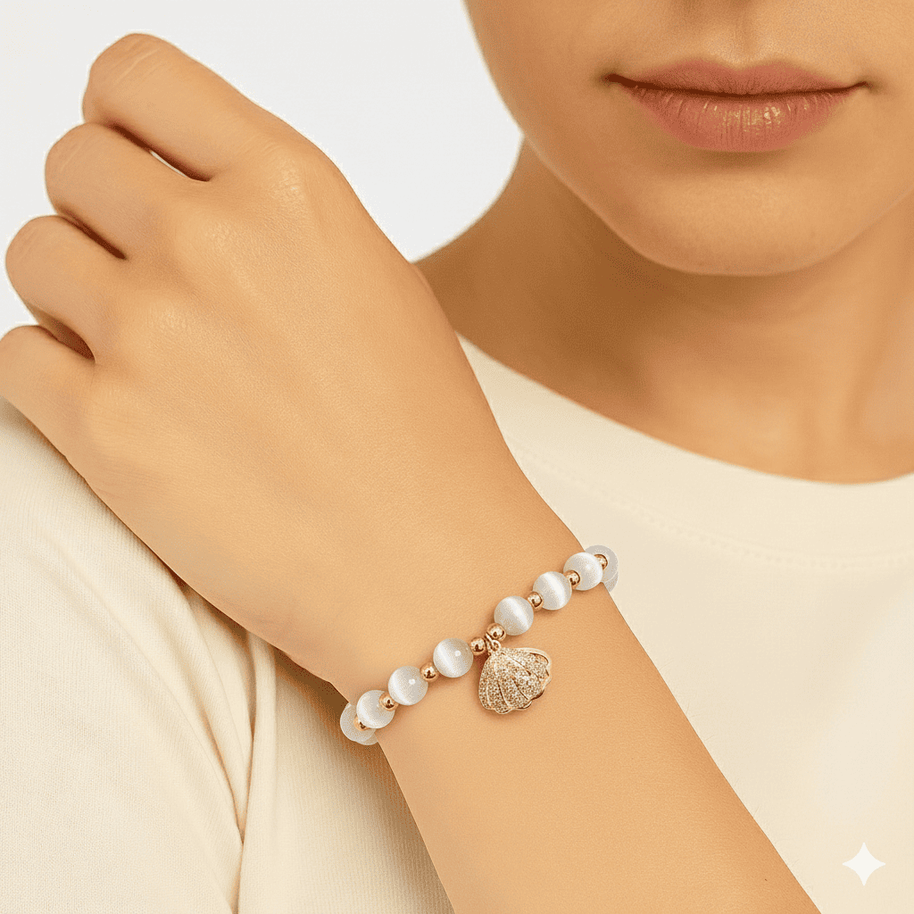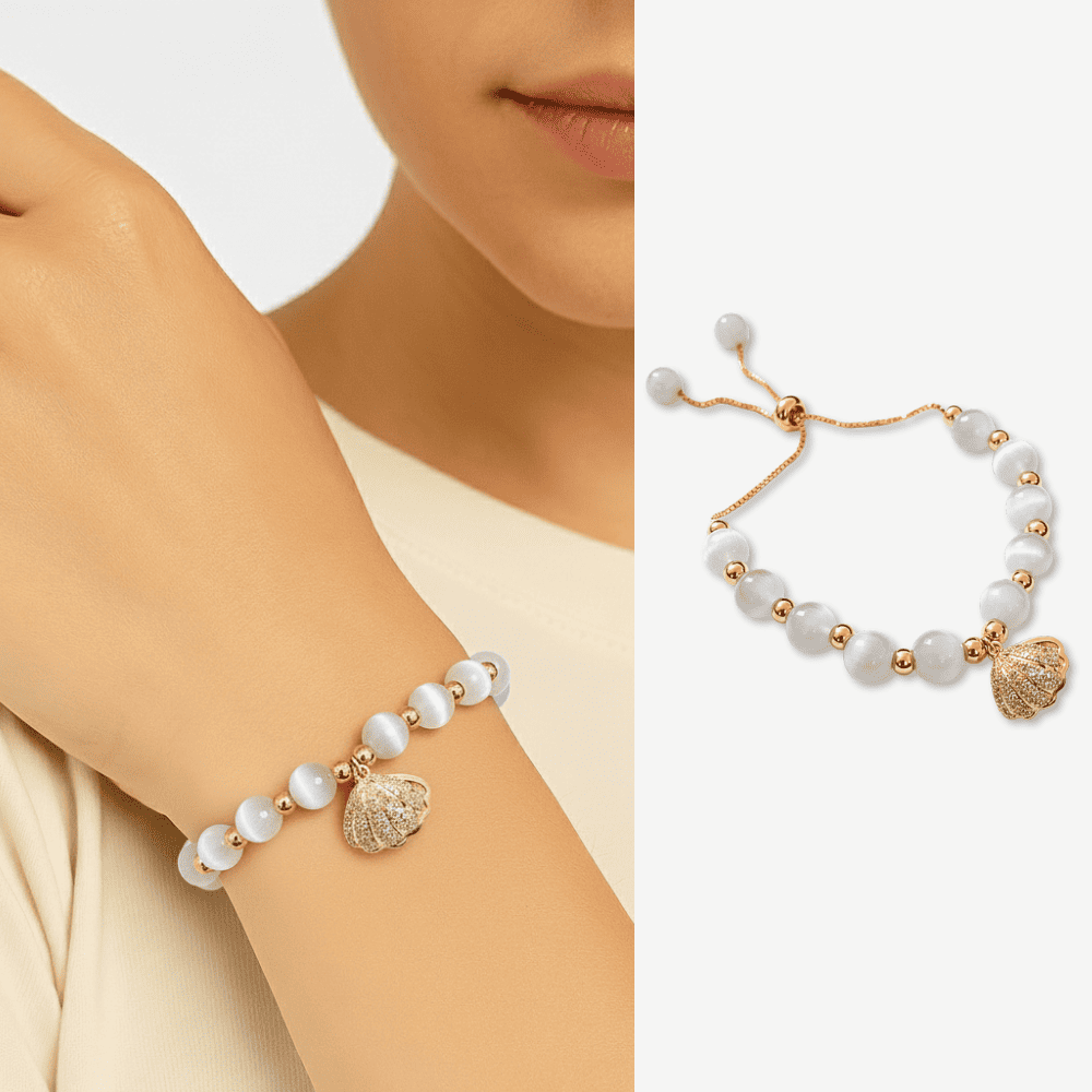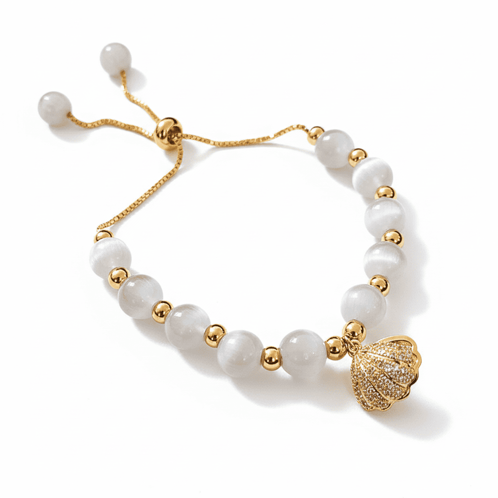 İncili İstiridye Tasarım Altın Renk Selenit Doğaltaş Kadın Bileklik