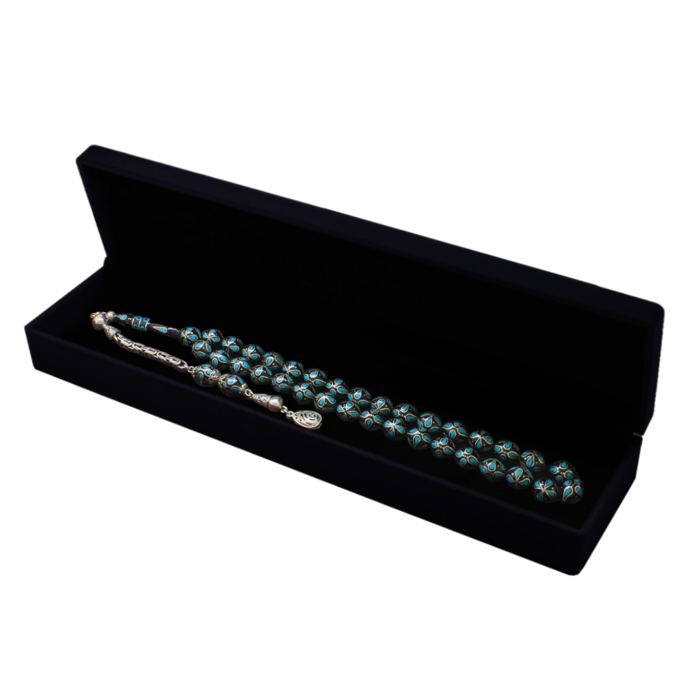 Kadife Kaplama Ahşap Tesbih Kutusu – Elegance Serisi - Siyah Renk