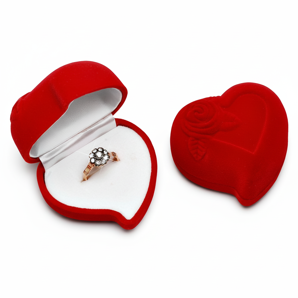 Kalp Tasarım Kırmızı Renk Kadife Yüzük Kutusu