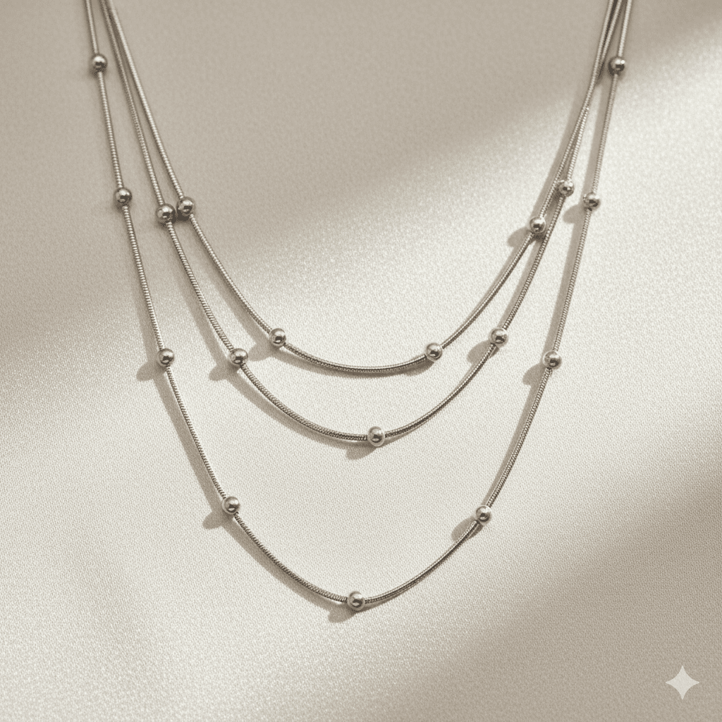 Kadın 3 lü Çelik Kolye - Toplu Snake Zincirli - Asimetrik Tasarım - Gümüş Renk