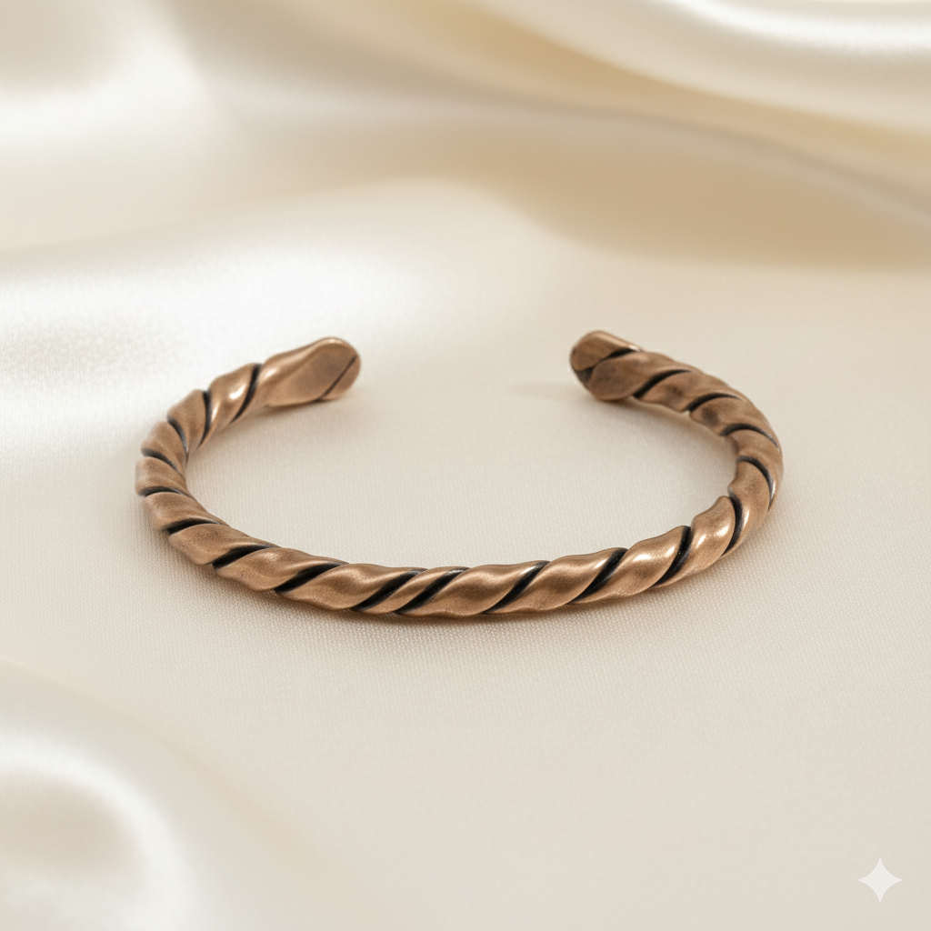 Kadın Bakır Bileklik - Otantik Oval Burma Tasarım - Ayarlanabilir Yapı