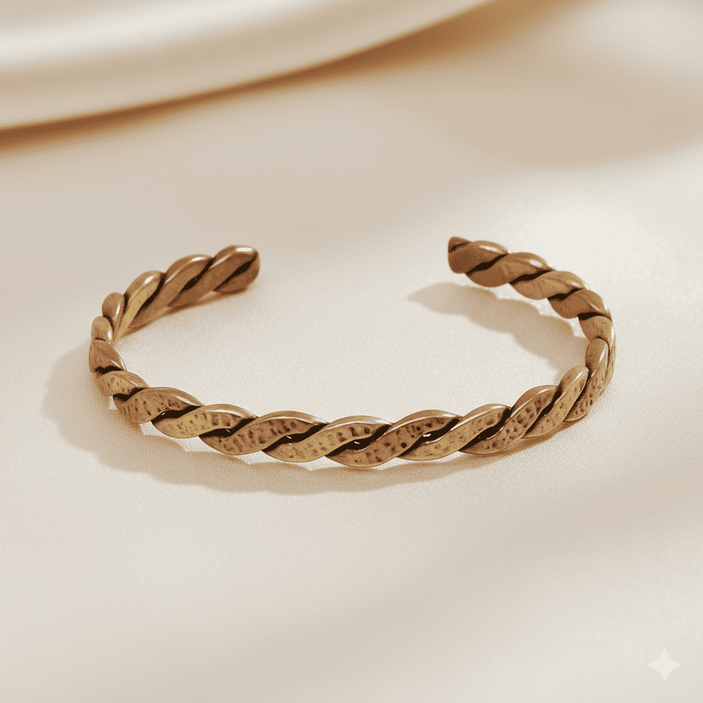 Kadın Bakır Pirinç Bileklik - Taşlamalı Burma Model - Otantik Tasarım - Ayarlanabilir Yapı