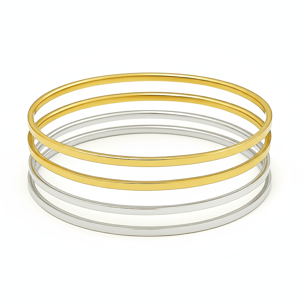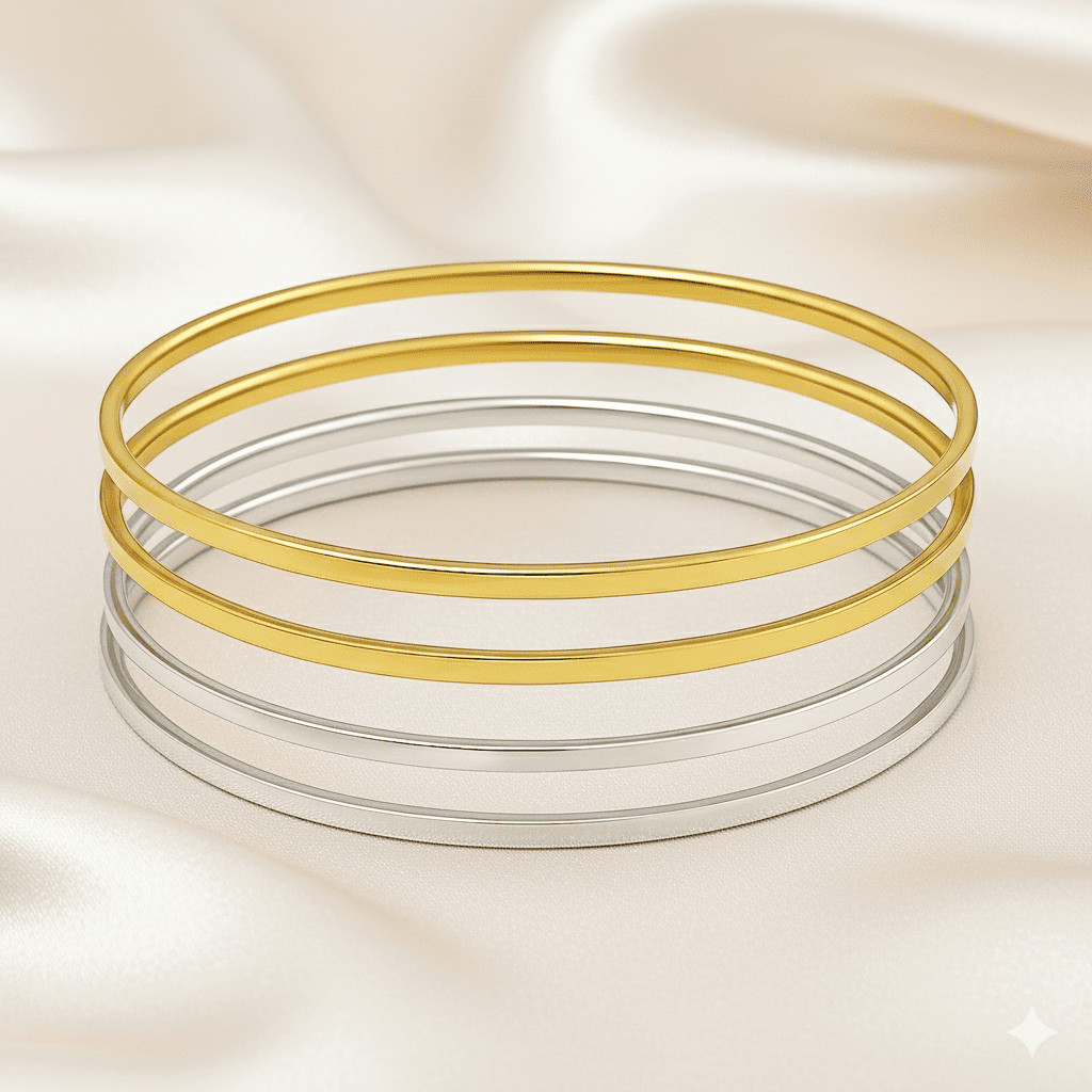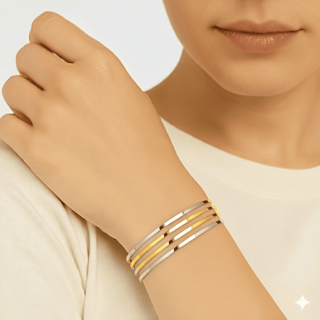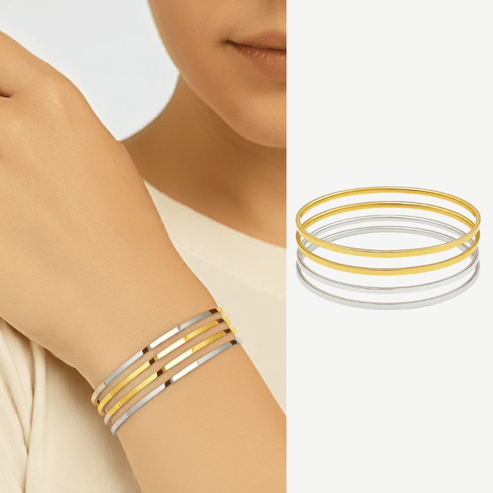 Kadın Çelik Ajda Bileklik - 4 lü Model - Gümüş Altın Renk