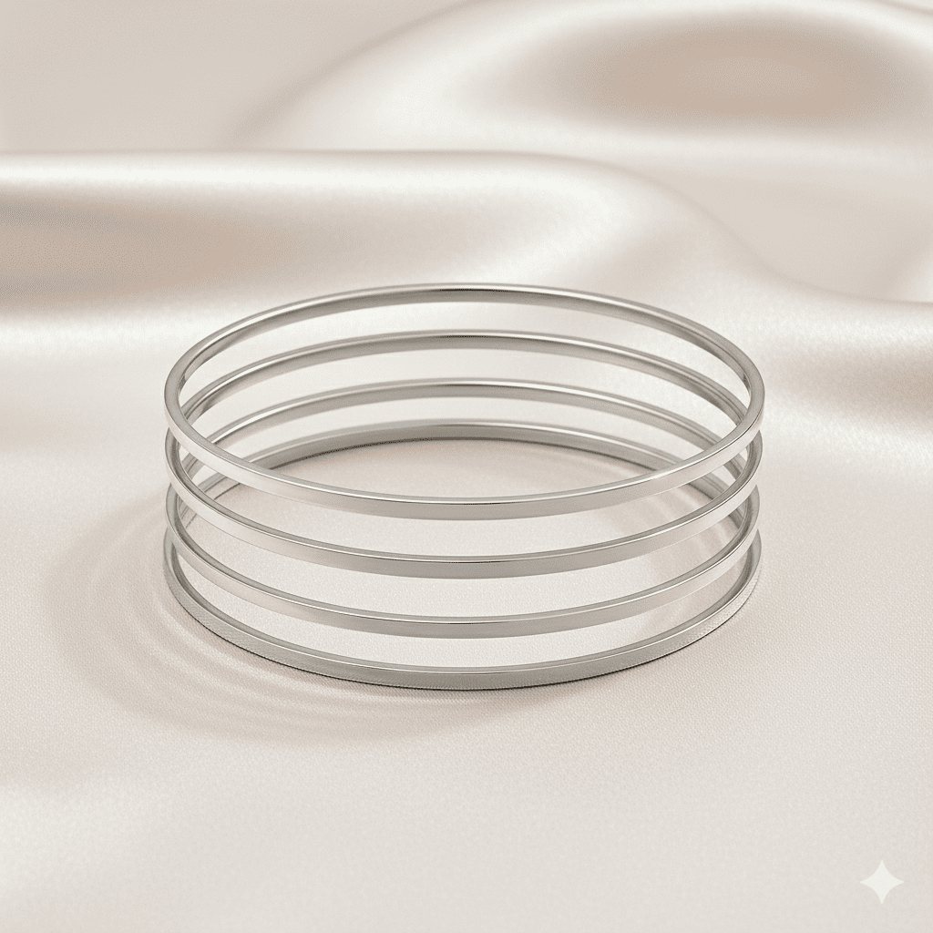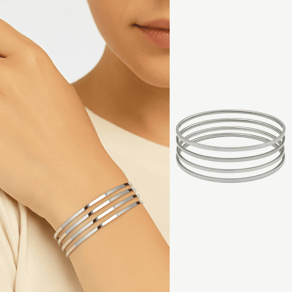 Kadın Çelik Ajda Bileklik - 4 lü Model - Gümüş Renk