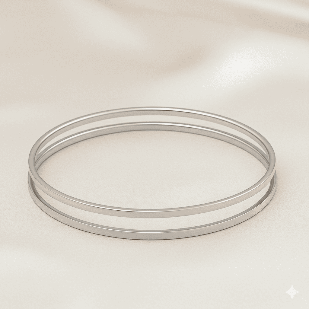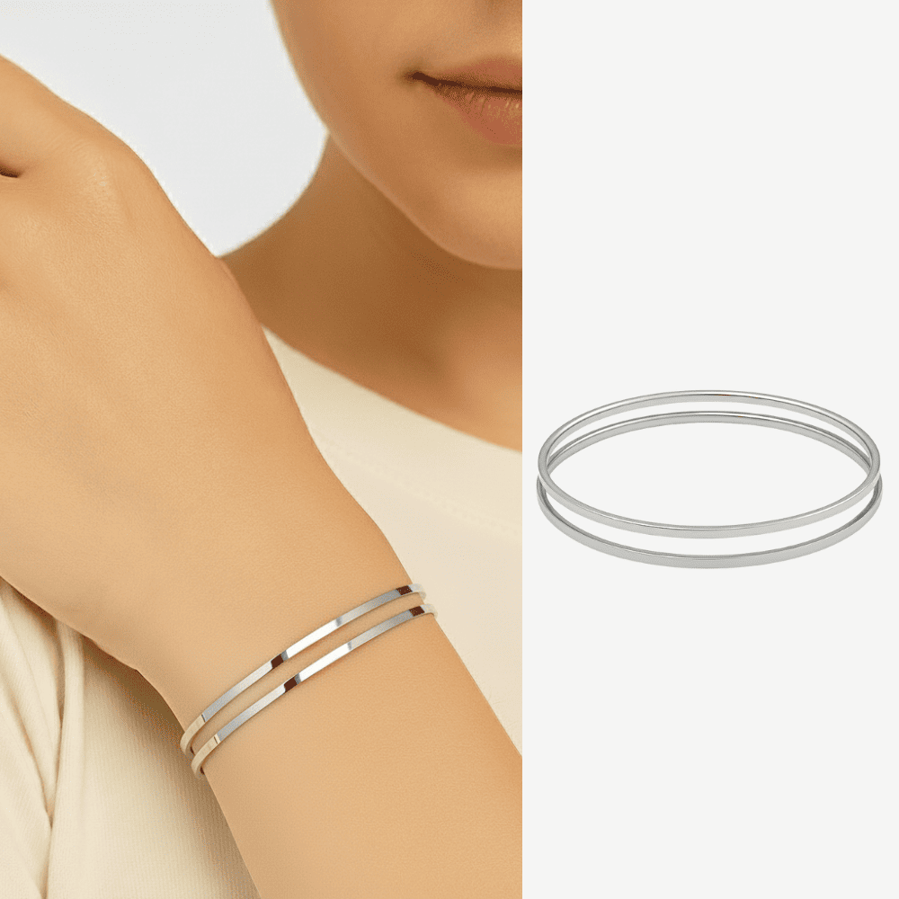Kadın Çelik Ajda Bileklik - İkili Model - Gümüş Renk