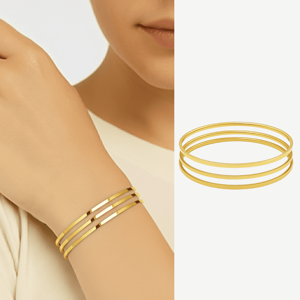 Kadın Çelik Ajda Bileklik - 3 lü Model - Altın Renk
