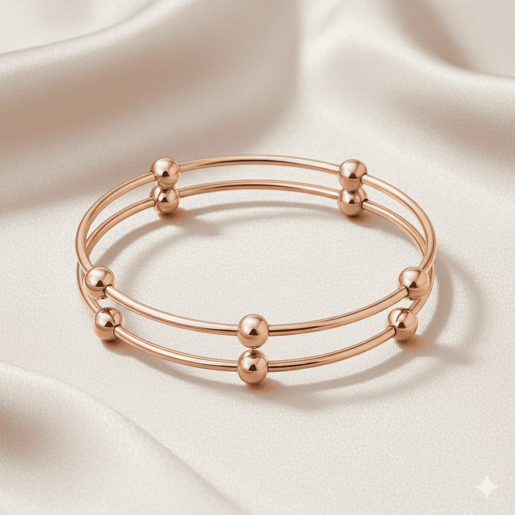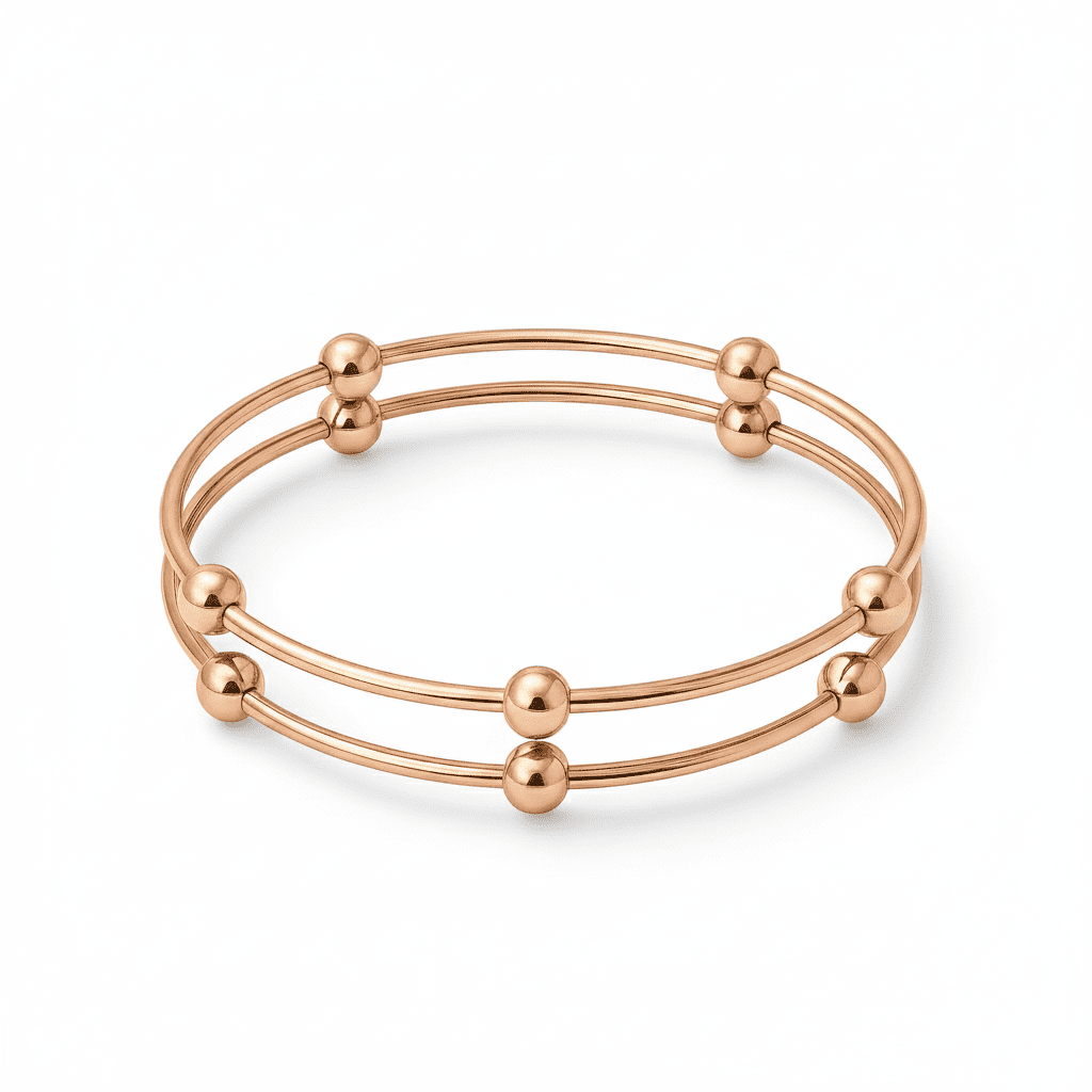 Kadın Çelik Bileklik - Beş Top Süslemeli Tasarım - İkili Model - Rose Renk
