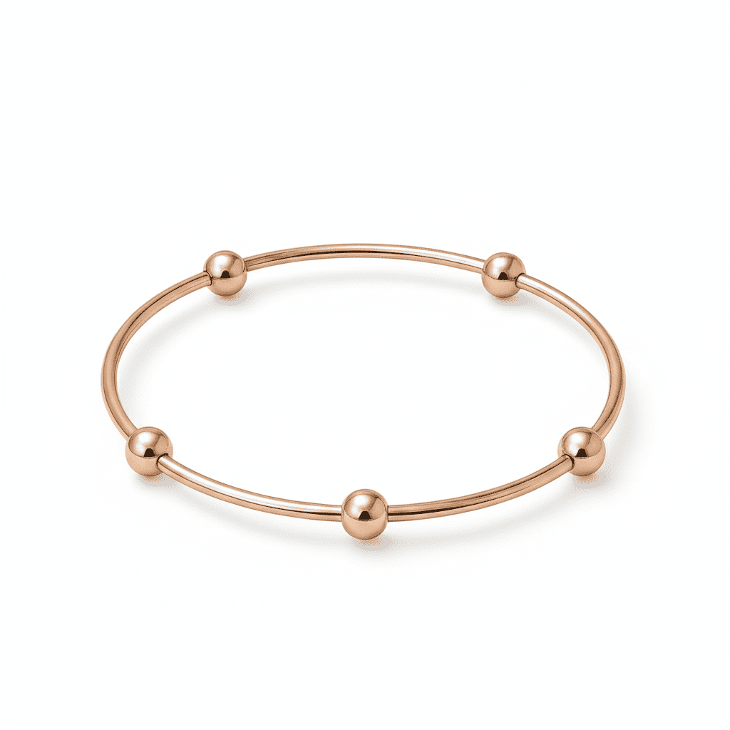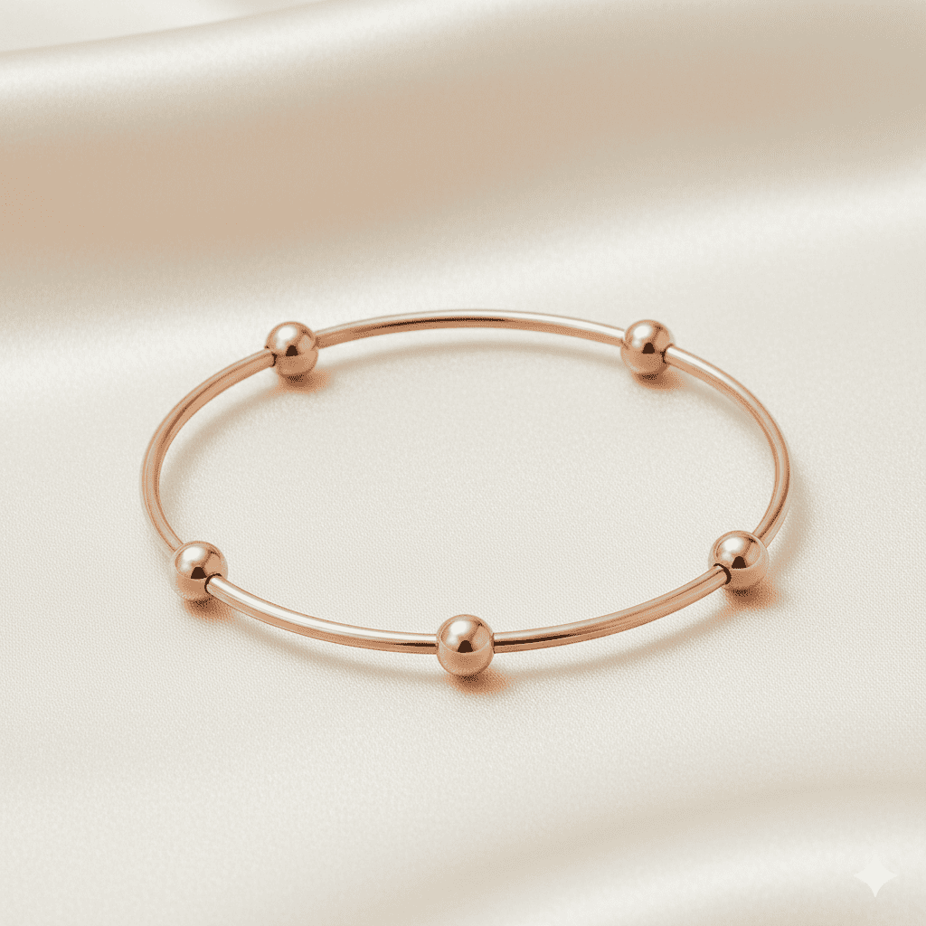 Kadın Çelik Bileklik - Beş Top Süslemeli Tasarım - Rose Renk