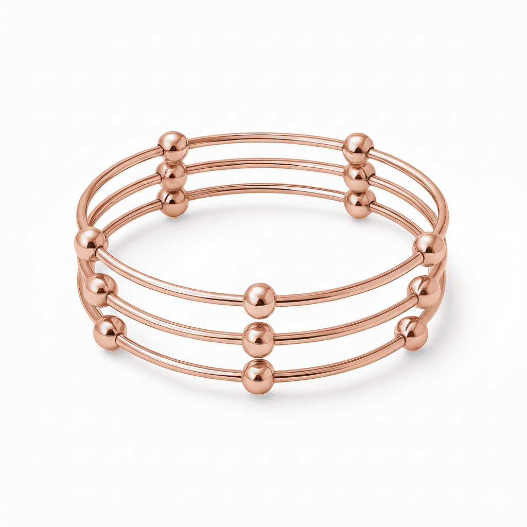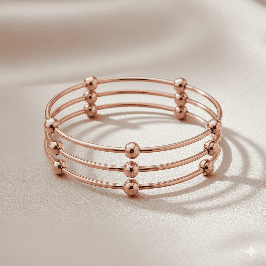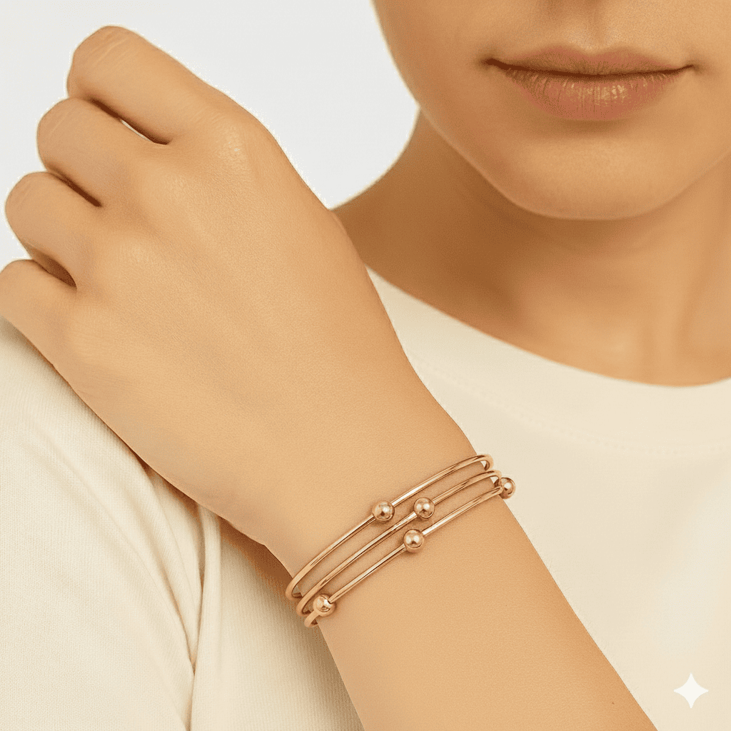 Kadın Çelik Bileklik - Beş Top Süslemeli Tasarım - 3 lü Model - Rose Renk
