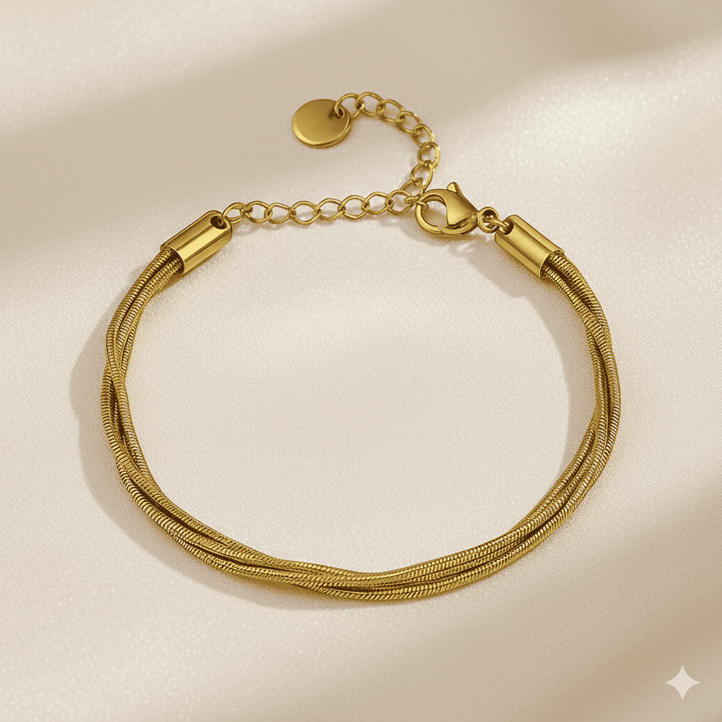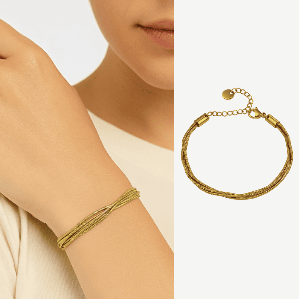 Kadın Çelik Bileklik - 5 li Snake Model - Altın Renk