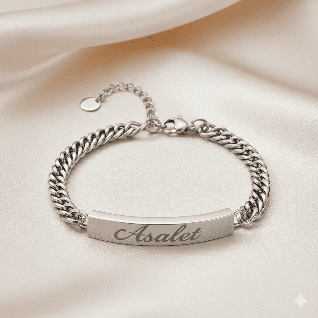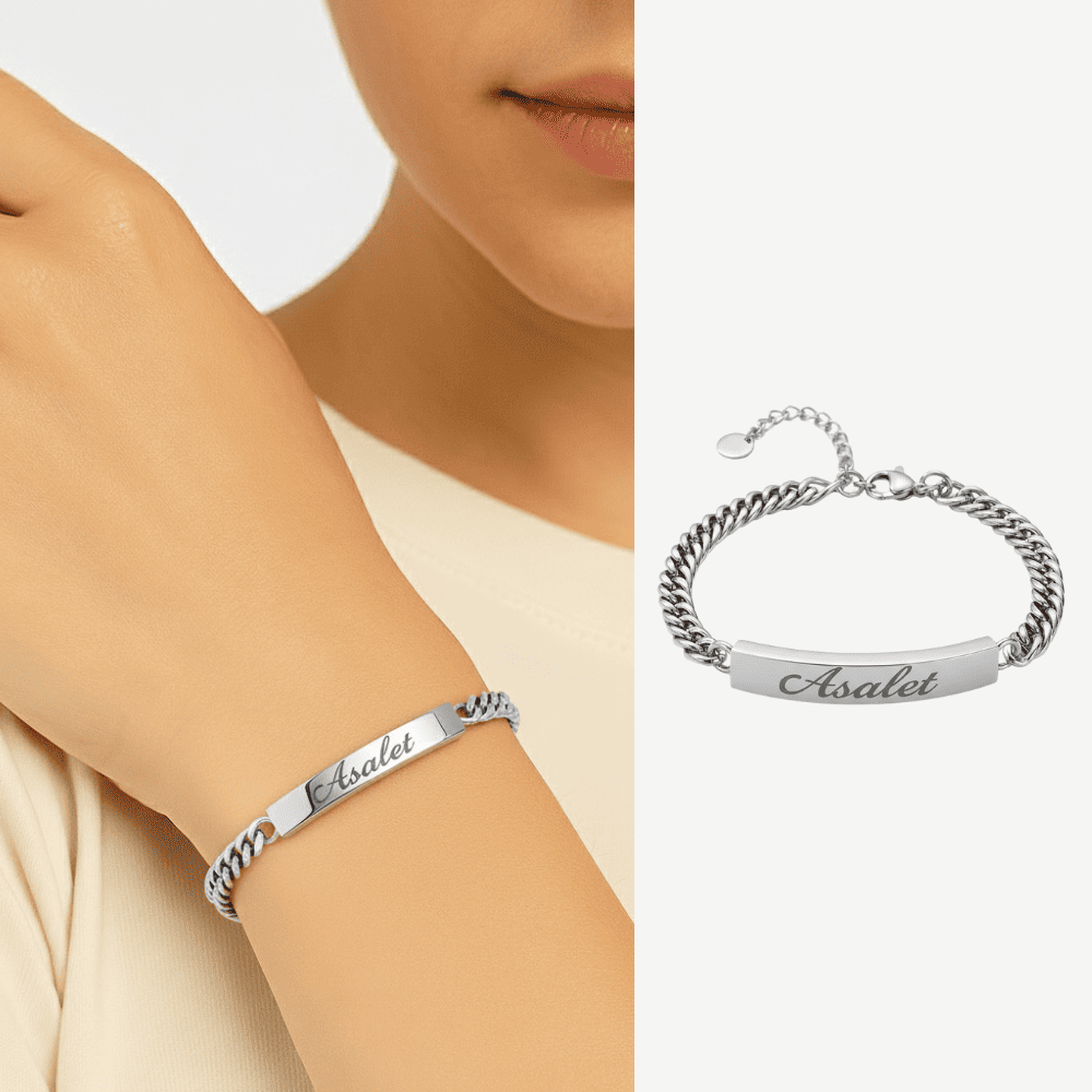 Kadın Çelik Bileklik - İsme Özel Yazılı - Gurmet Model - Gümüş Renk