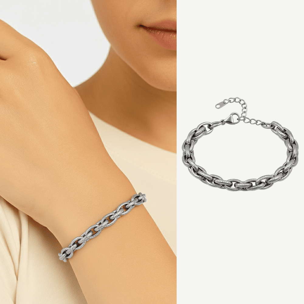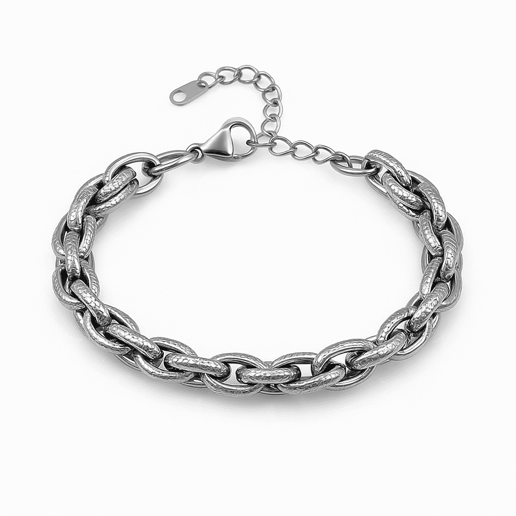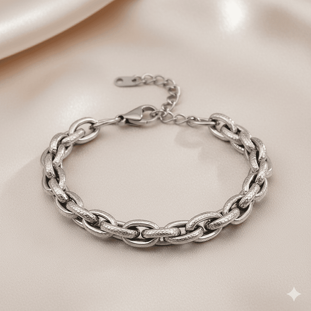Kadın Çelik Bileklik - Kalın Burma Model - Gümüş Renk