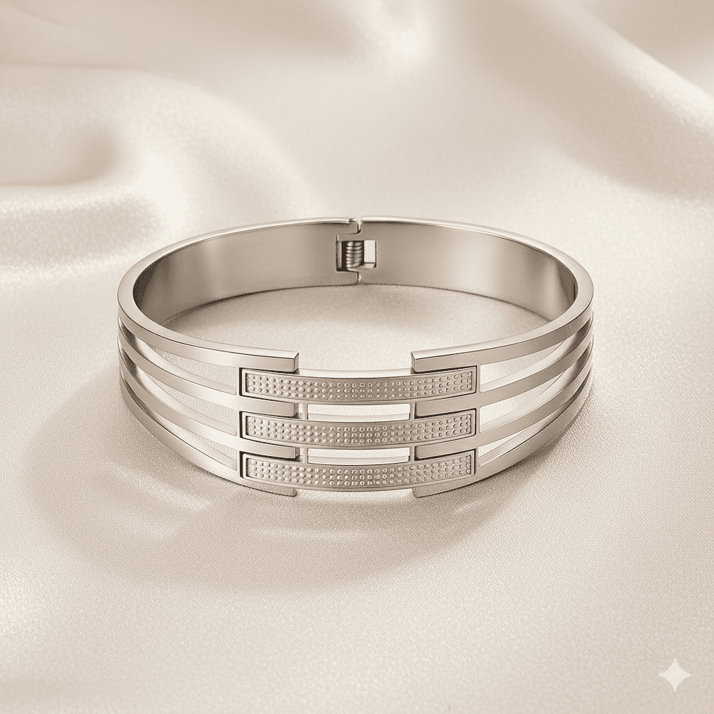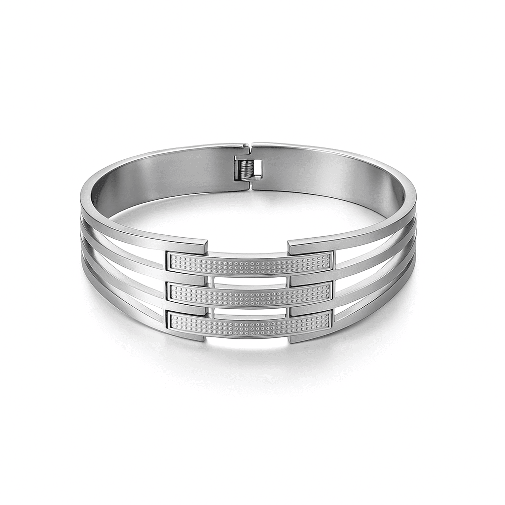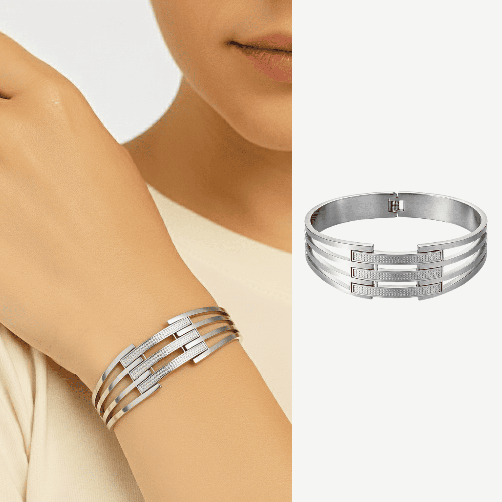 Kadın Çelik Bileklik - Kelepçe Tasarım - Dört Sıralı - Gümüş Renk