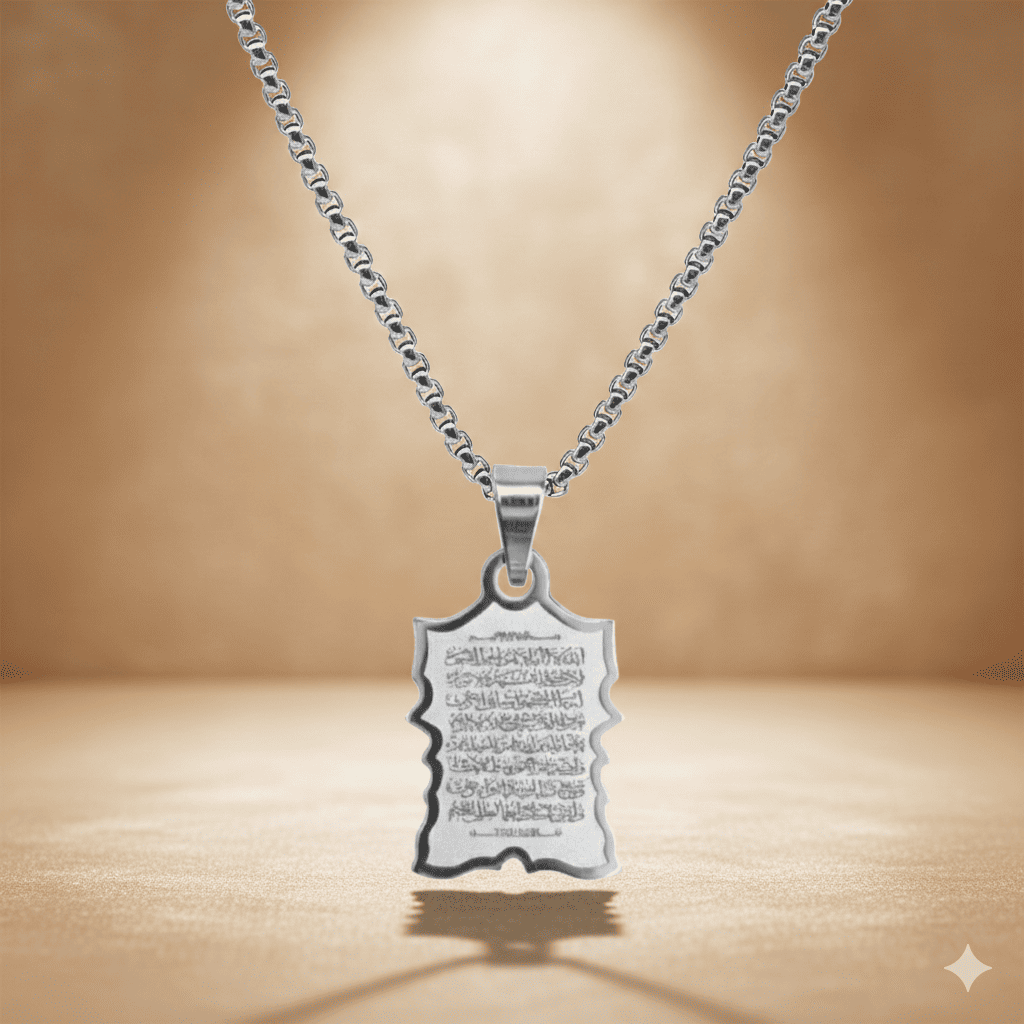 Ayetel Kürsi'nin Gücü Yanınızda: Kuran-ı Kerim'in kalbi olarak kabul edilen Ayetel Kürsi, Allah'ın (c.c.) en büyük isimlerinden birini içerir. Bu özel kolyemiz ile, Allah'ın korumasını her an yanınızda hissedin. Kötü nazarlardan, negatif enerjilerden ve belalardan korunmak için Ayetel Kürsi'nin güçlü enerjisinden faydalanın. Ayetel Kürsi'yi taşımak, Allah'ın (c.c.) rahmetine daha yakın olmanızı sağlar. Bu özel kolyemiz ile, hem dünya hayatında hem de ahirette Allah'ın koruması altında hissedin.