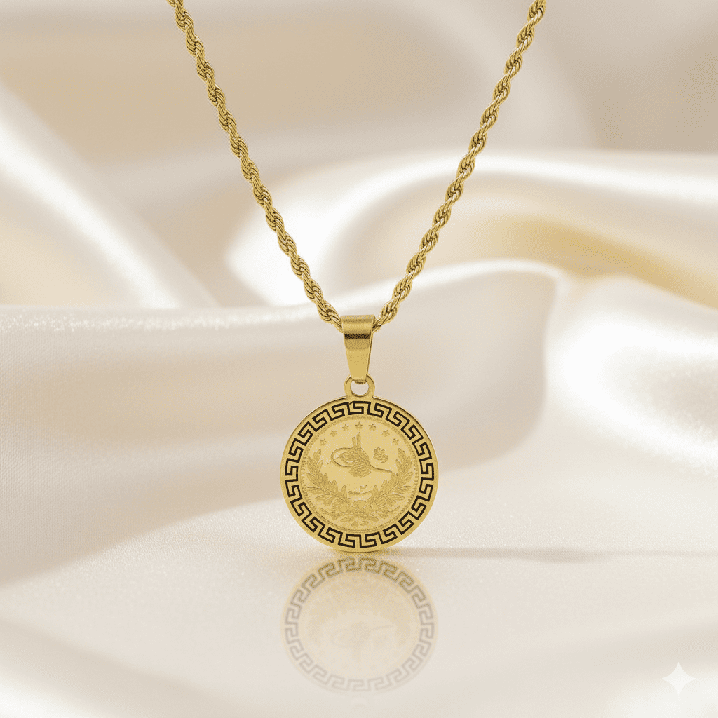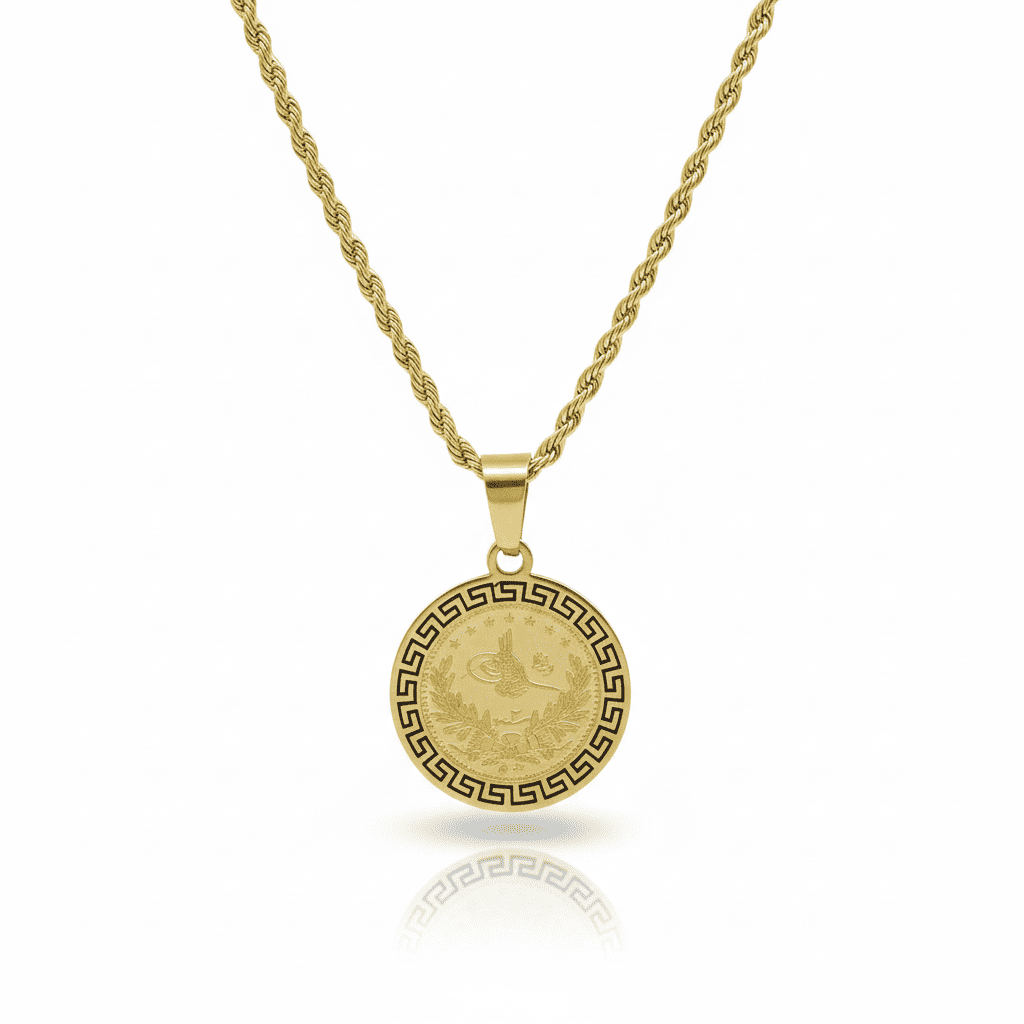 Kadın Çelik Kolye - Beşi Bir Yerde Reşat Altını Tasarım - Burma Zincirli - Altın Renk