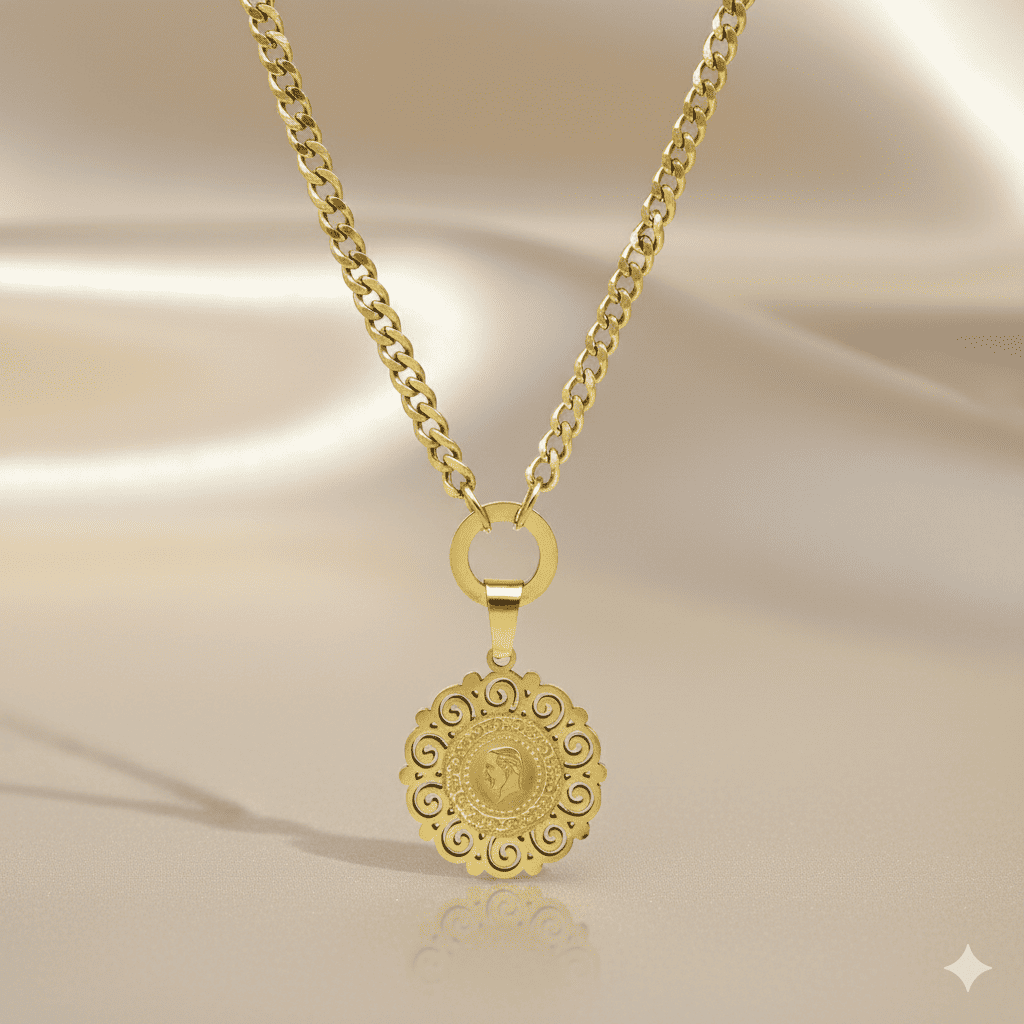 Kadın Çelik Kolye - Beşi Bir Yerde Reşat Altını Tasarım - Gurmet Zincirli - Altın Renk