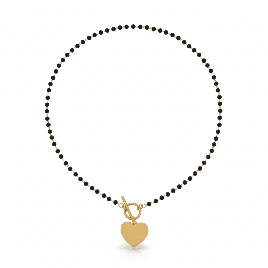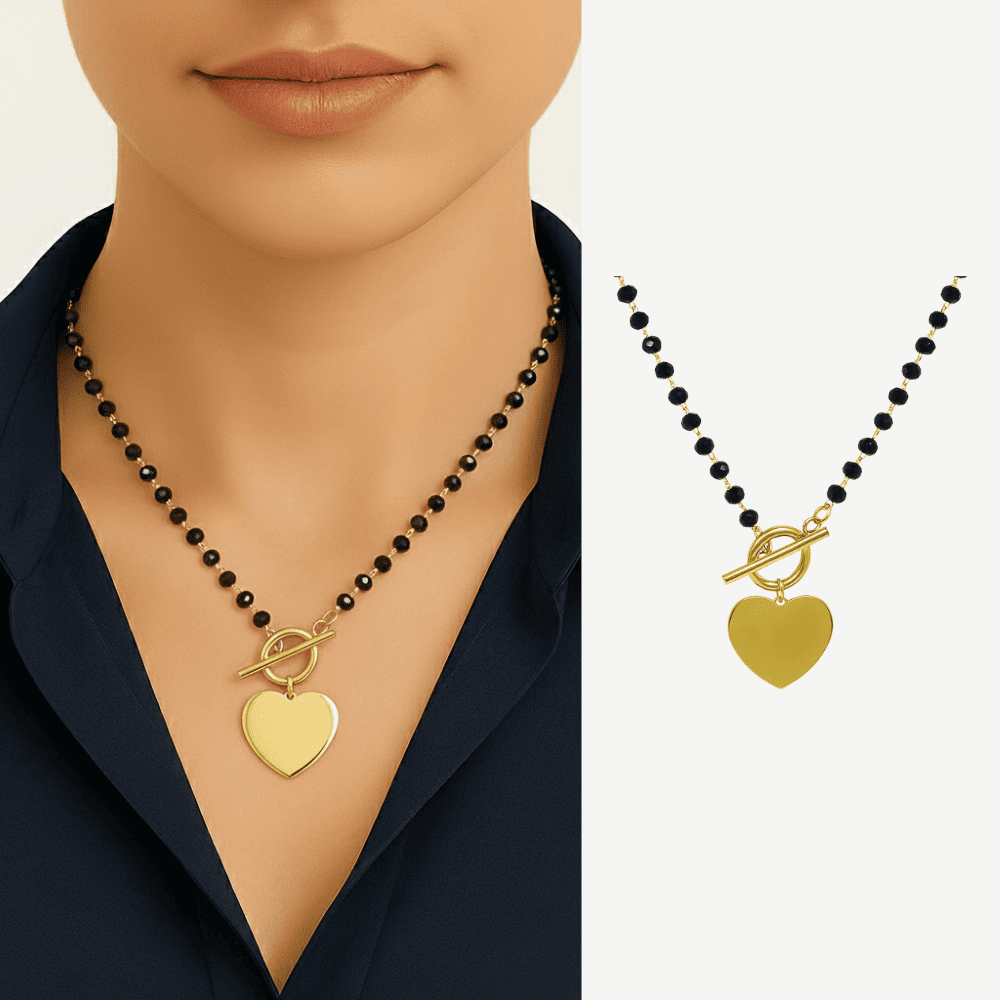 Kadın Çelik Kolye - İsme Özel Yazılı - Kalp Tasarım - Siyah Zirkon Taşlı - Altın Renk