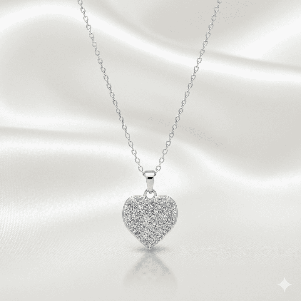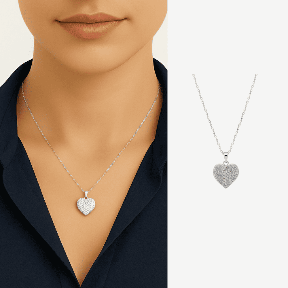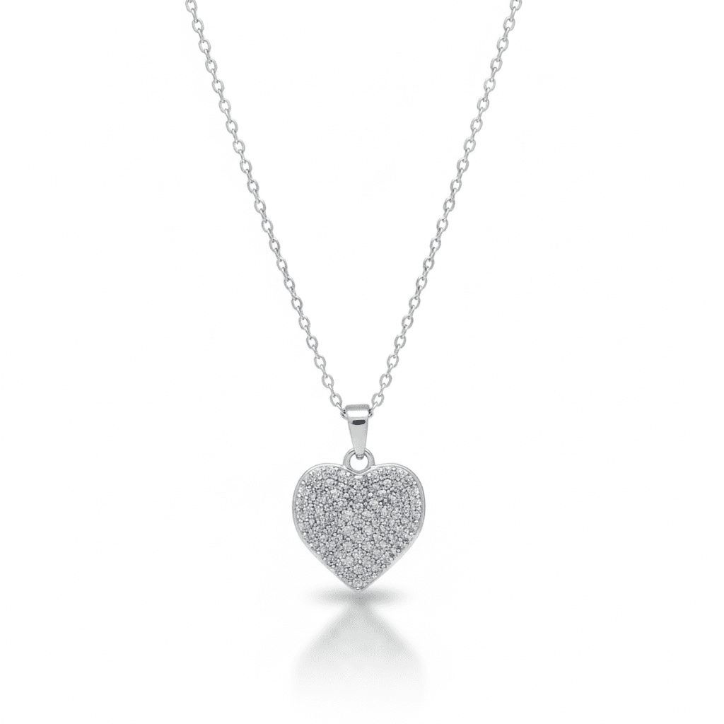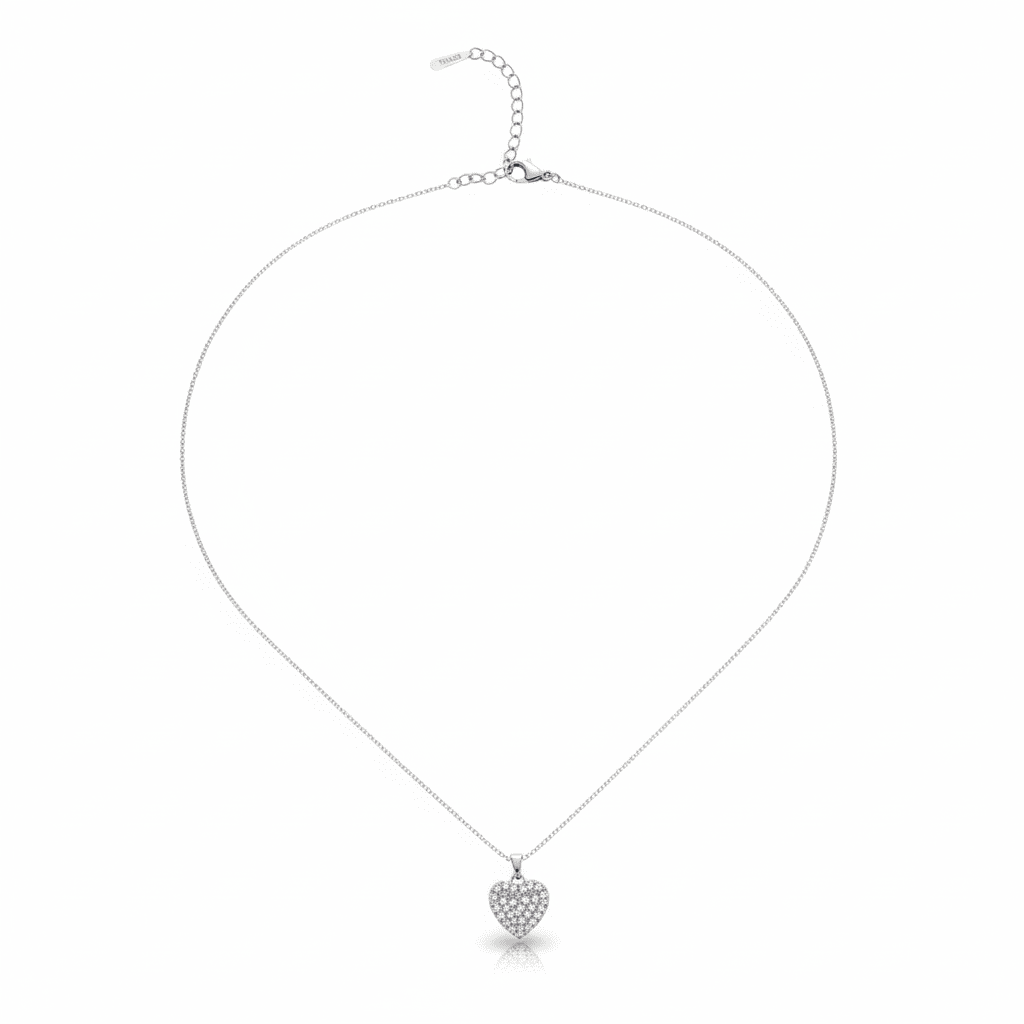 Kadın Çelik Kolye - Kalp Tasarım - Beyaz Zirkon Taşlı - Gümüş Renk