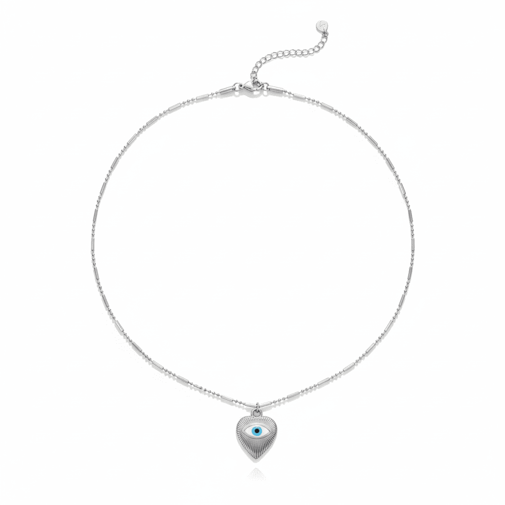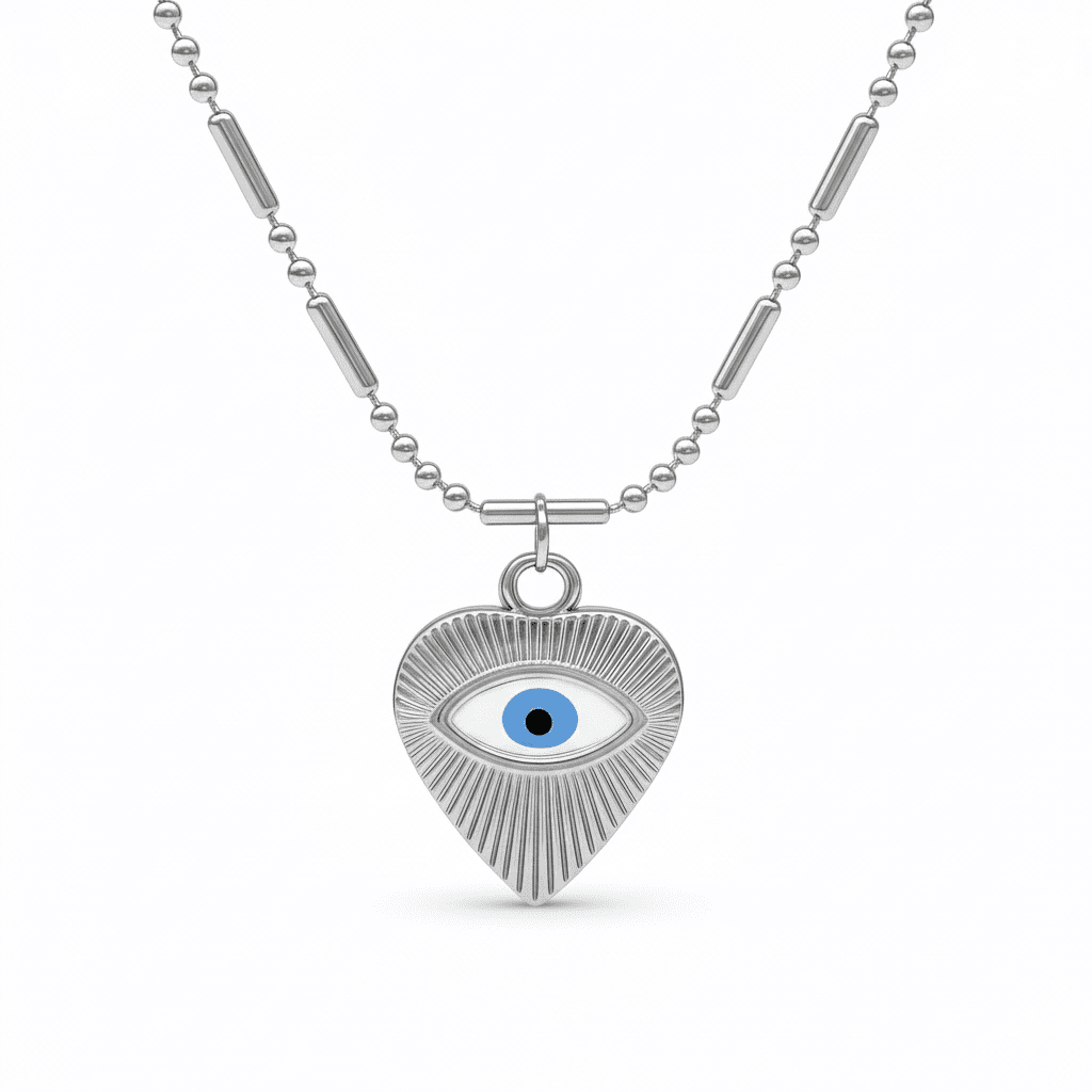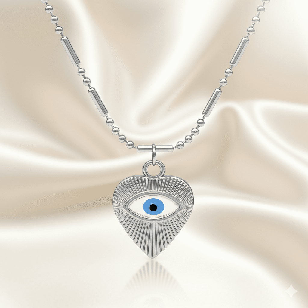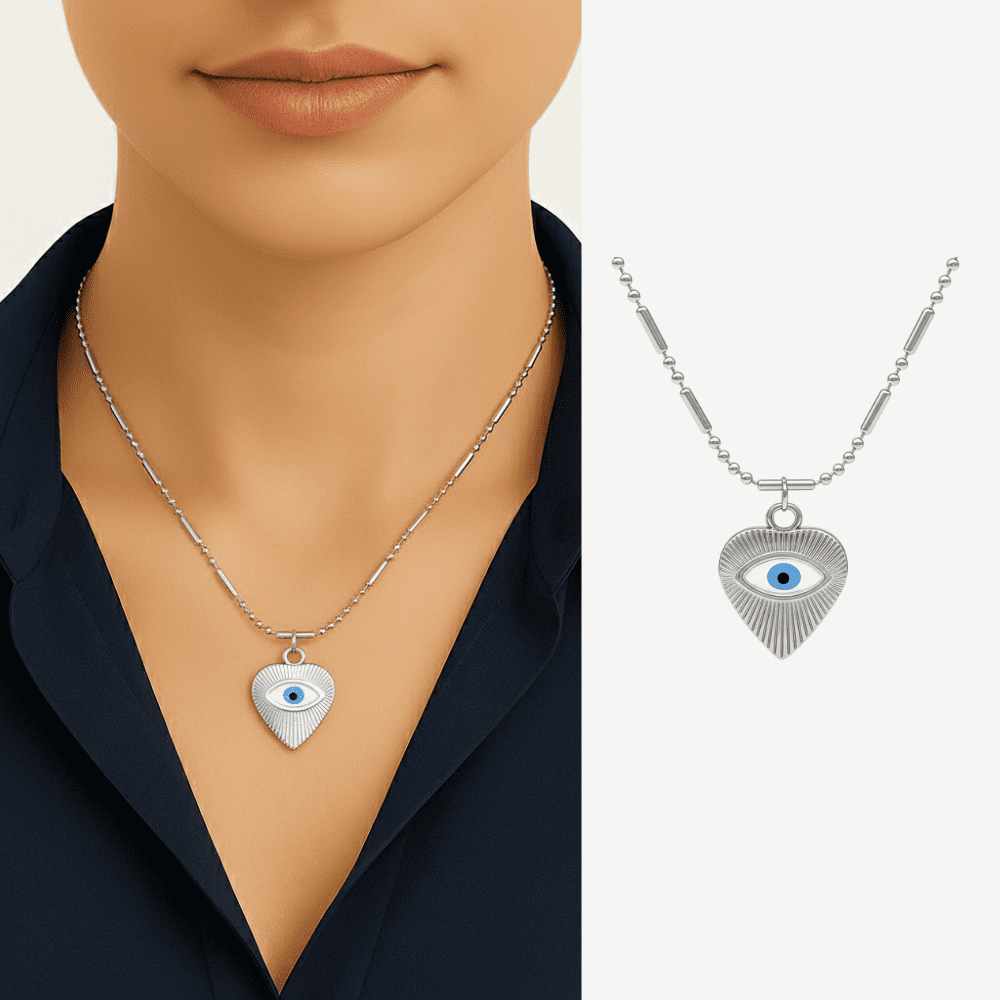 Kadın Çelik Kolye - Kalp Tasarım - Göz Detaylı - Gümüş Renk