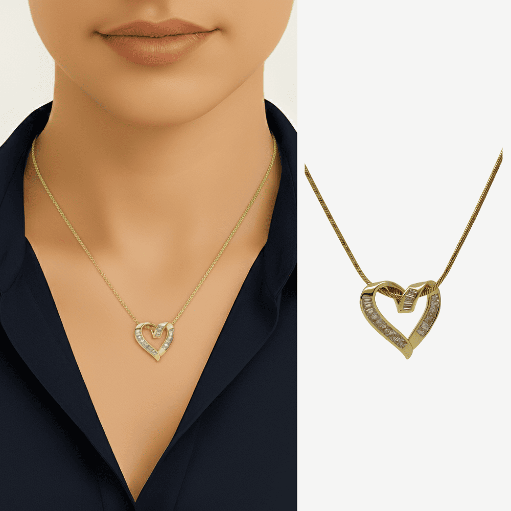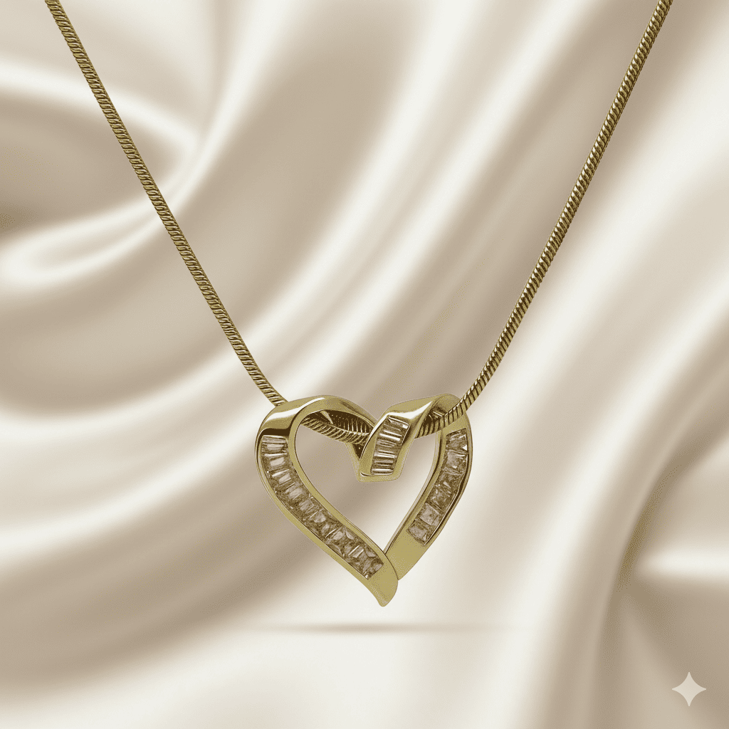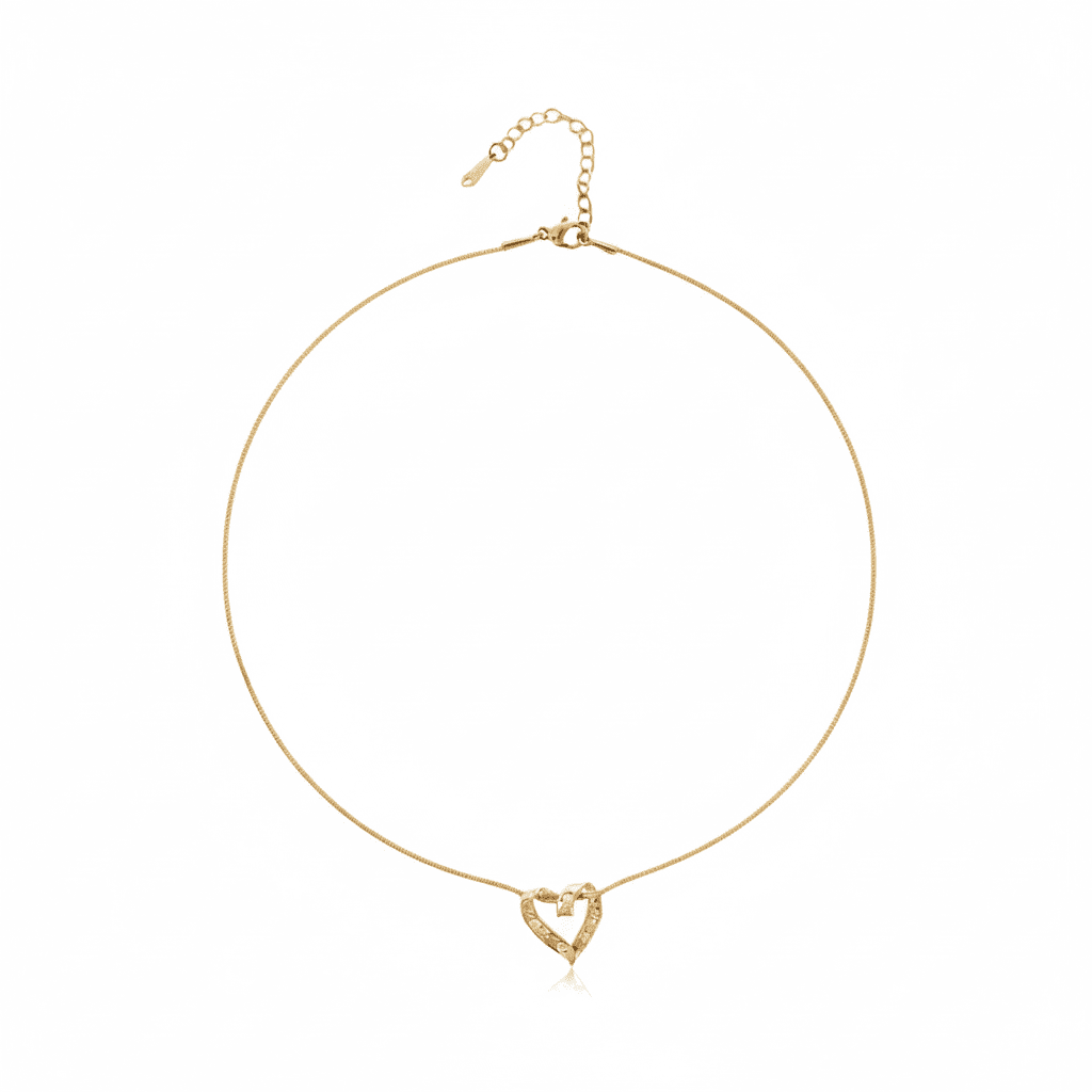 Kadın Çelik Kolye - Kalp Tasarım - Snake Zincirli - Beyaz Zirkon Taşlı - Altın Renk