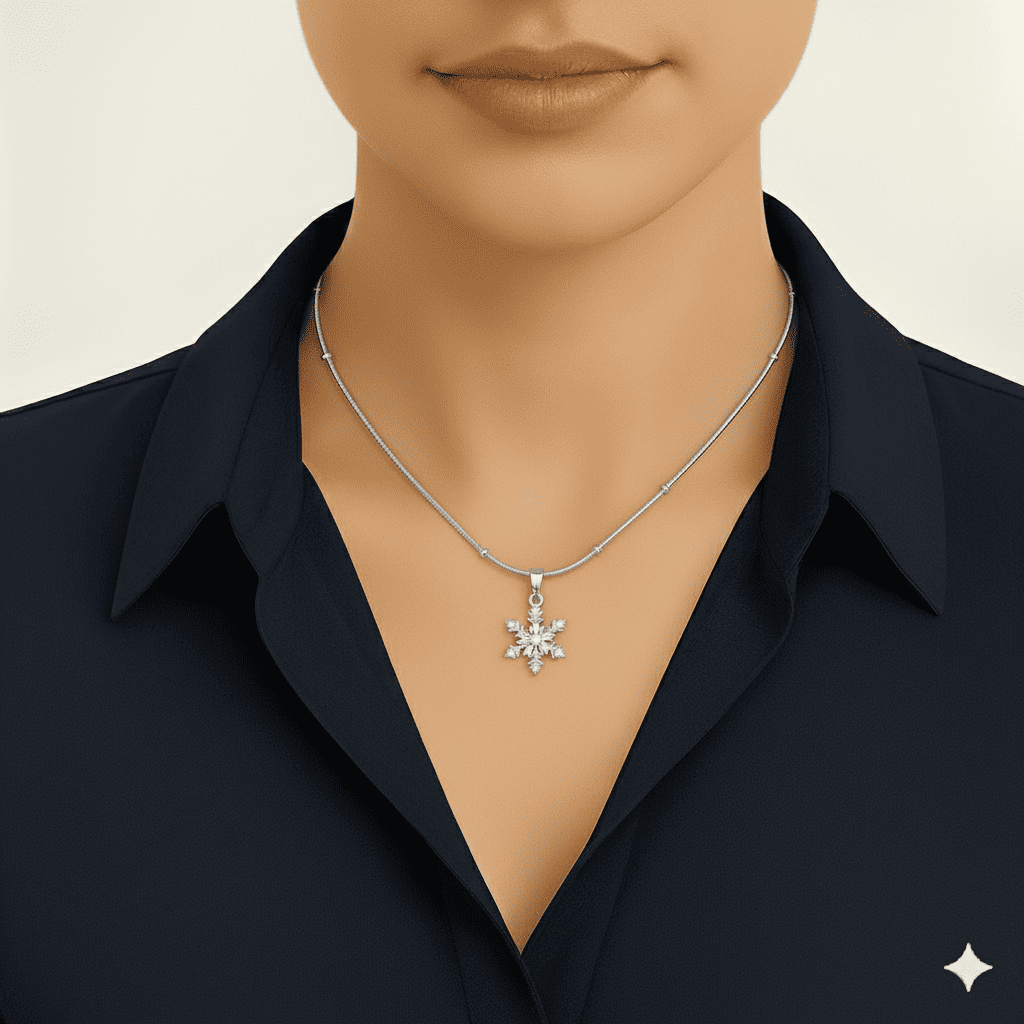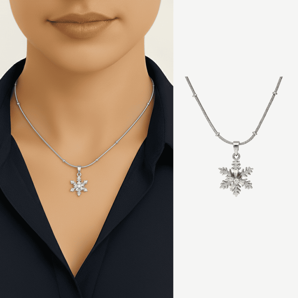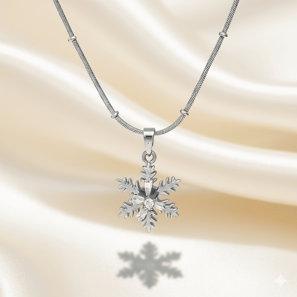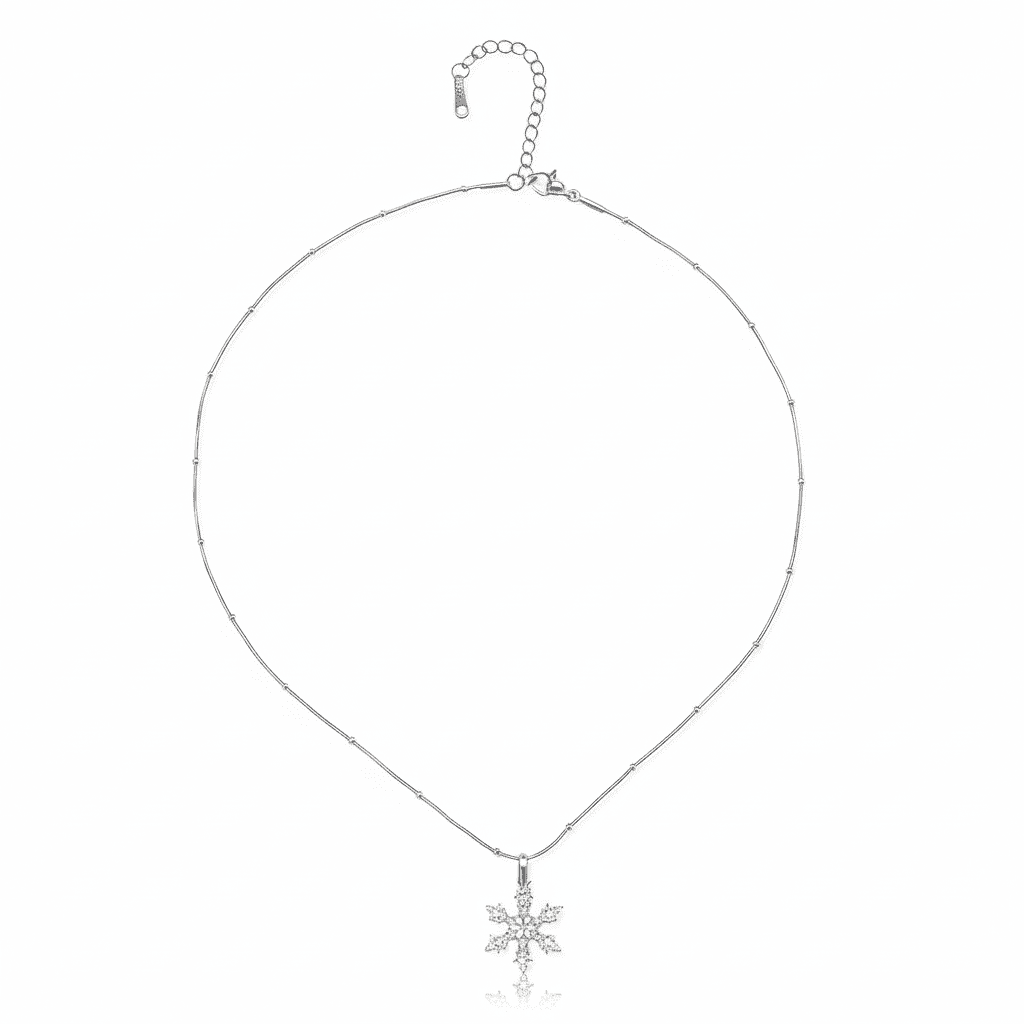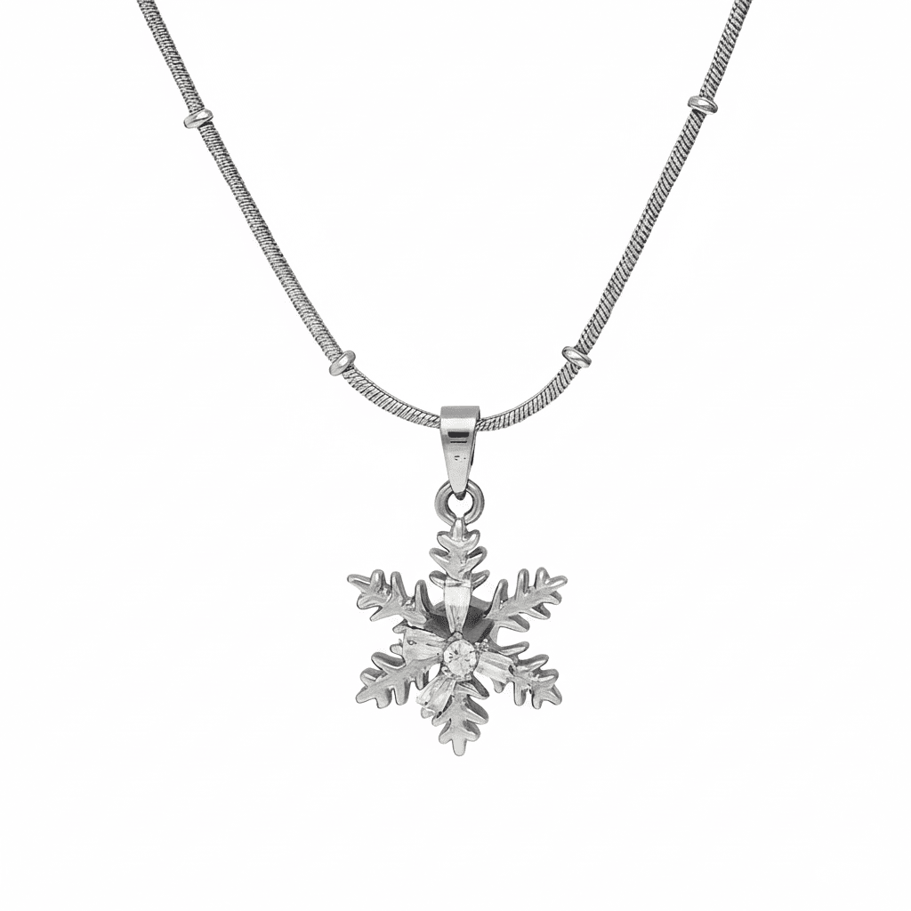 Kadın Çelik Kolye - Kar Tanesi Tasarım - Beyaz Zirkon Taşlı - Stres Çarkı Model - Gümüş Renk
