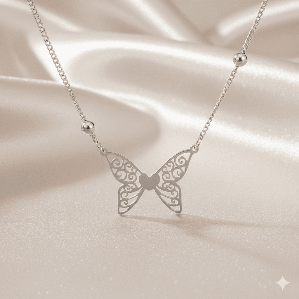 Kadın Çelik Kolye - Kelebek Tasarım - Gümüş Renk