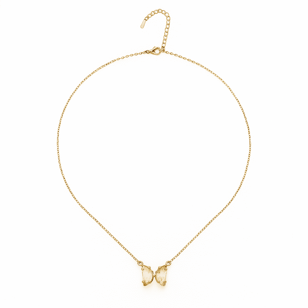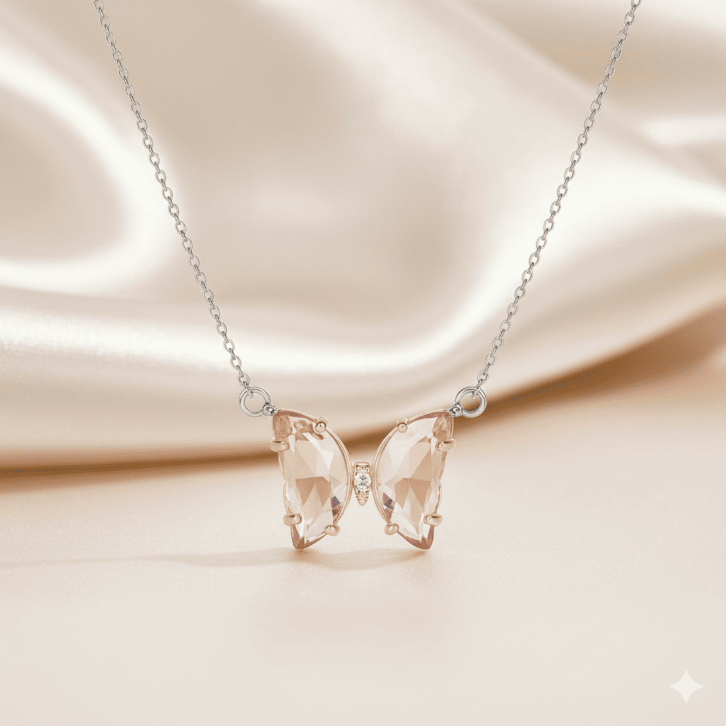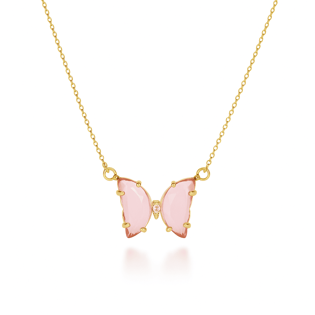 Kadın Çelik Kolye - Kelebek Tasarım - Pembe Zirkon Taşlı - Altın Renk