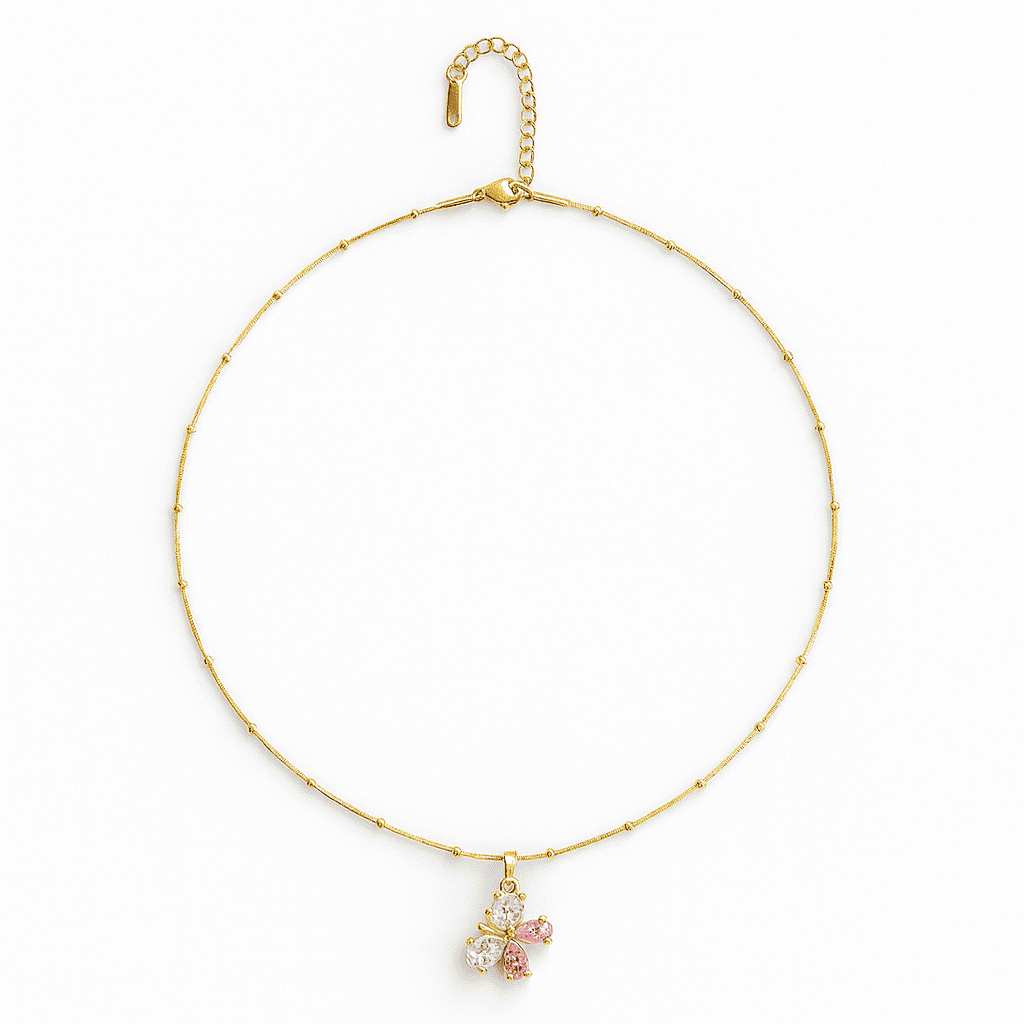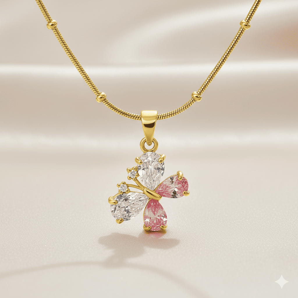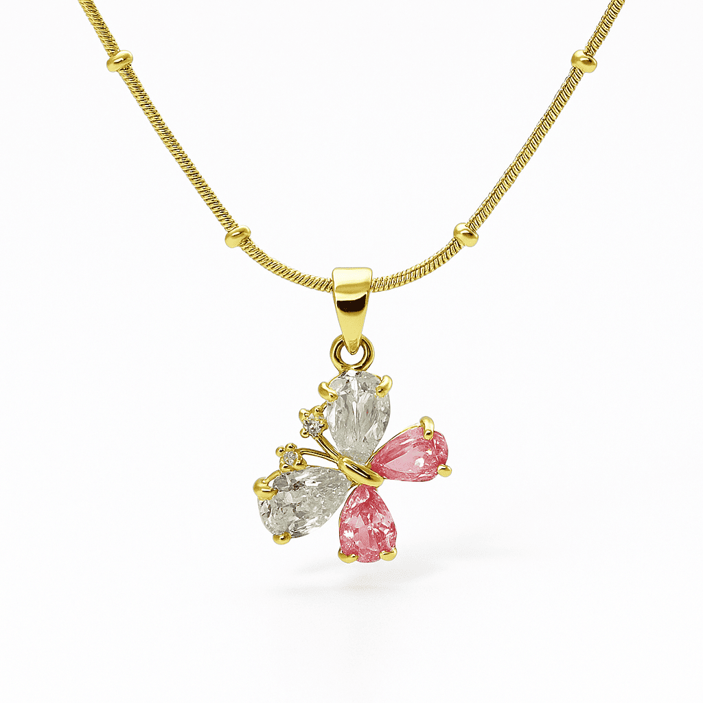Kadın Çelik Kolye - Kelebek Tasarım - Renkli Zirkon Taşlı - Altın Renk