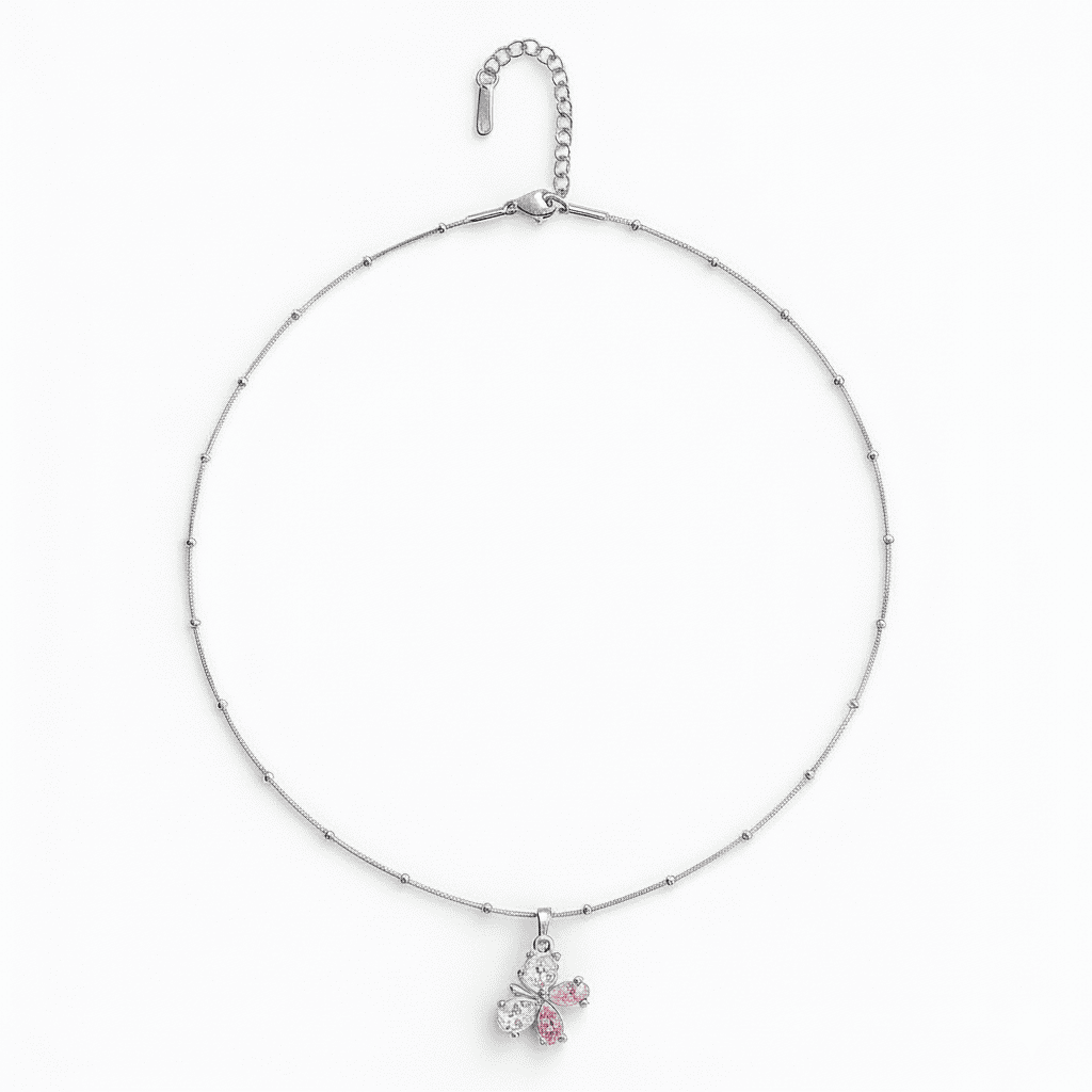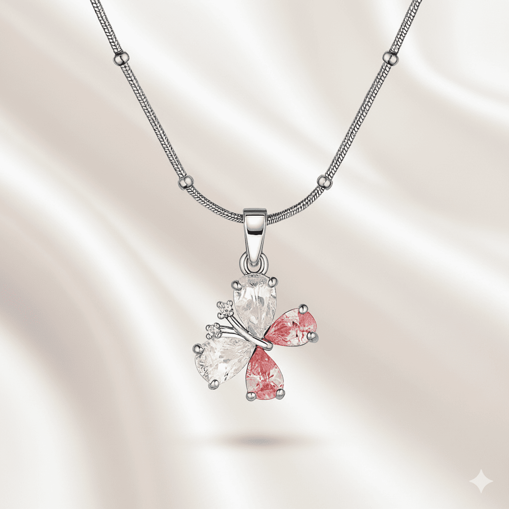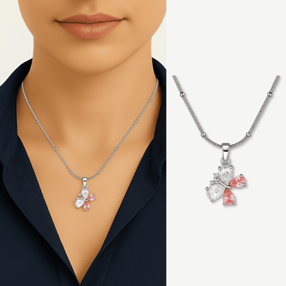 Kadın Çelik Kolye - Kelebek Tasarım - Renkli Zirkon Taşlı - Gümüş Renk