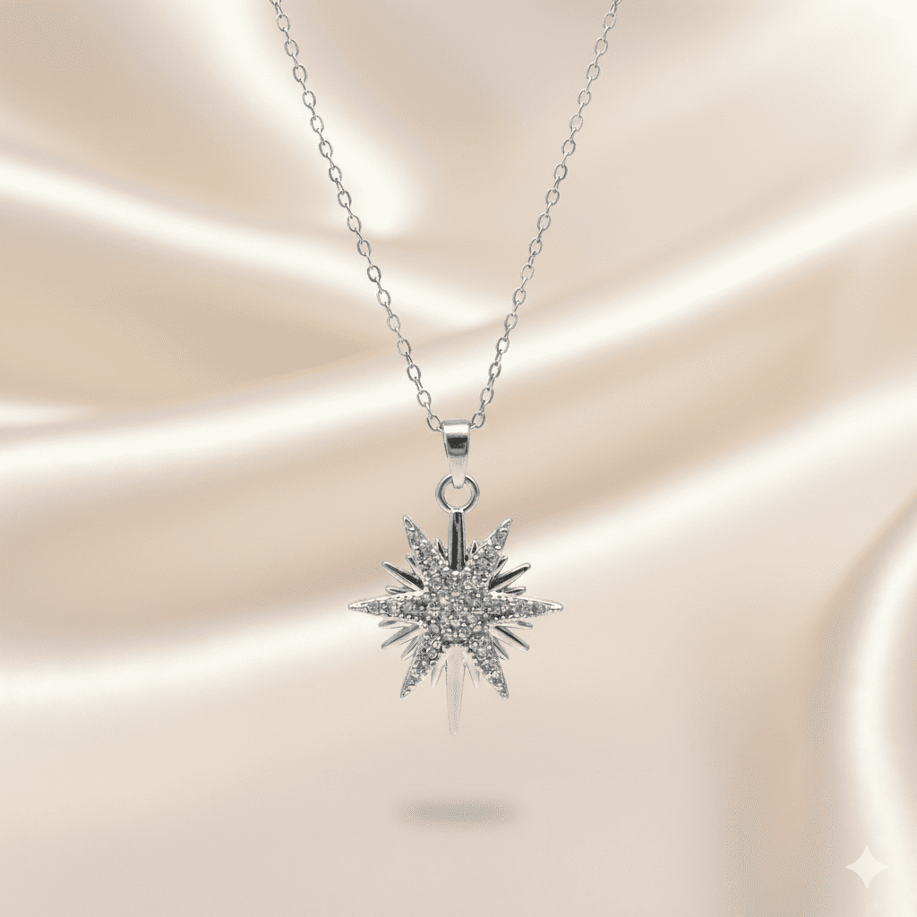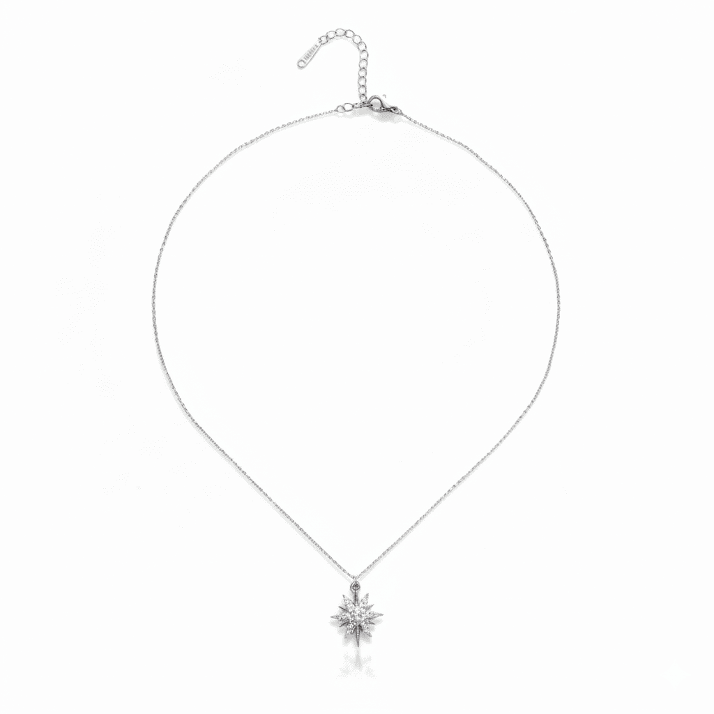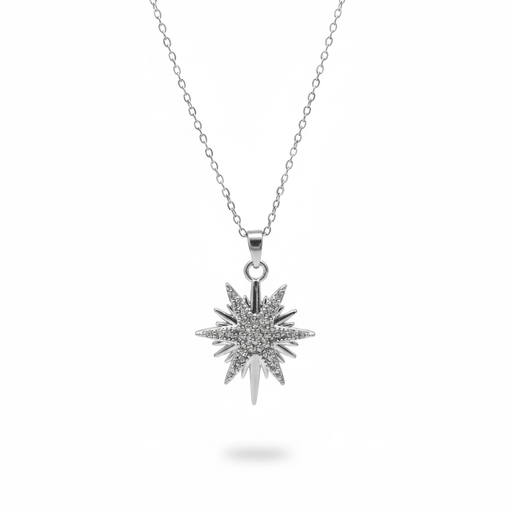 Kadın Çelik Kolye - Kuzey Yıldızı Tasarım - Beyaz Zirkon Taşlı - Gümüş Renk