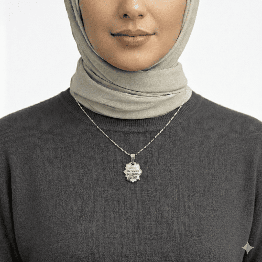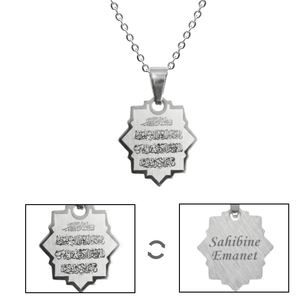 Kadın Çelik Kolye - Nazar Ayeti Yazılı - Kişiye Özel - Gümüş Renk - Yıldız Tasarım - 45 cm