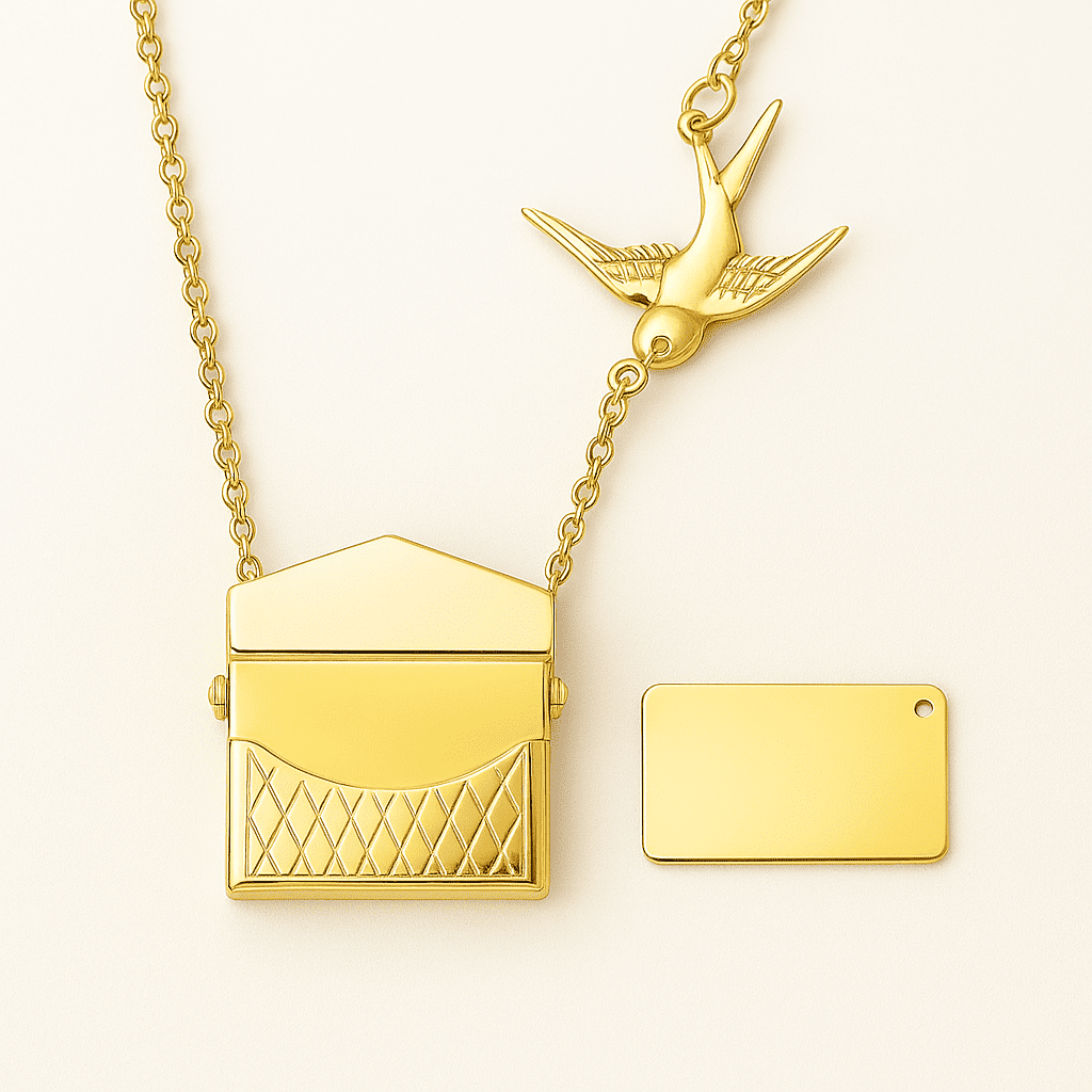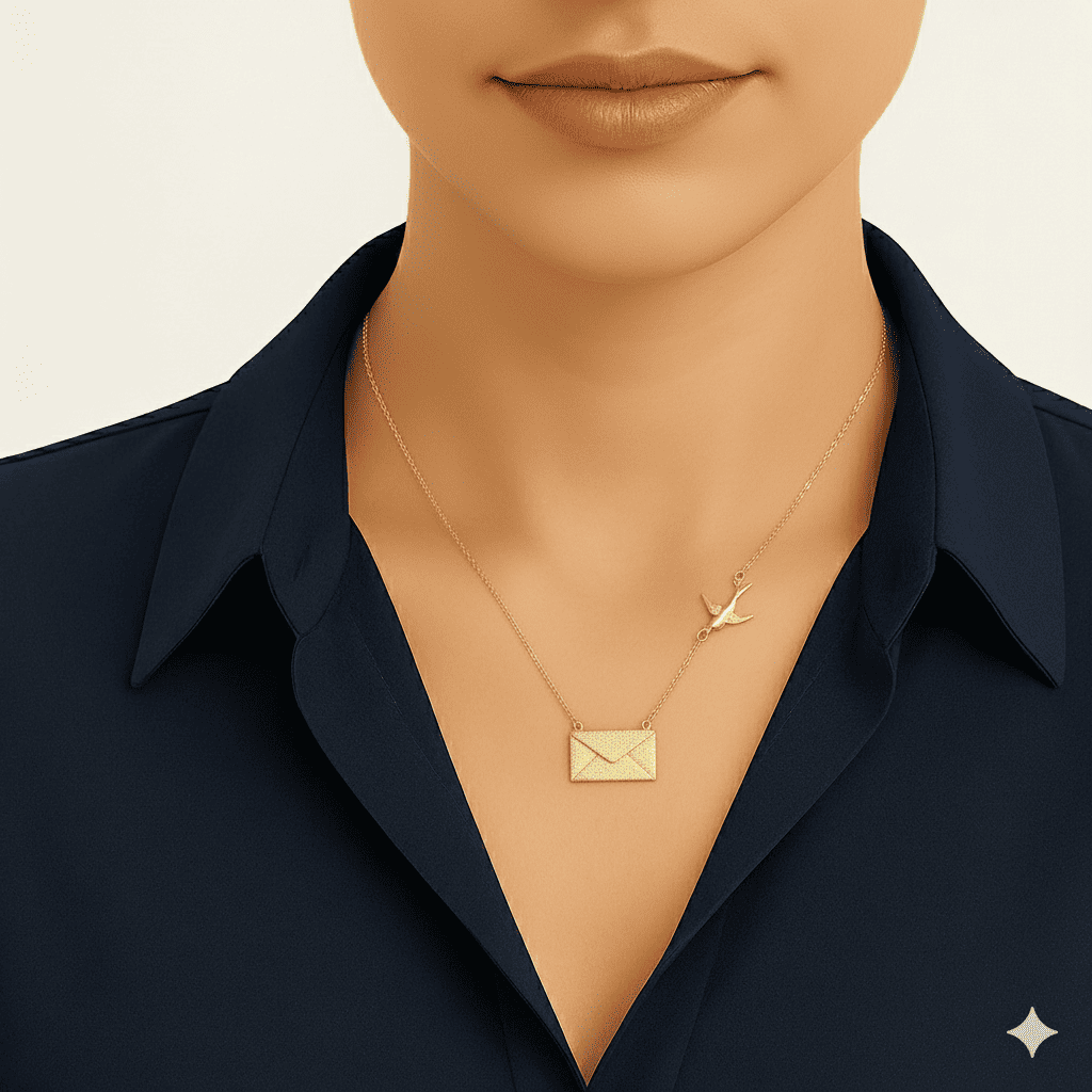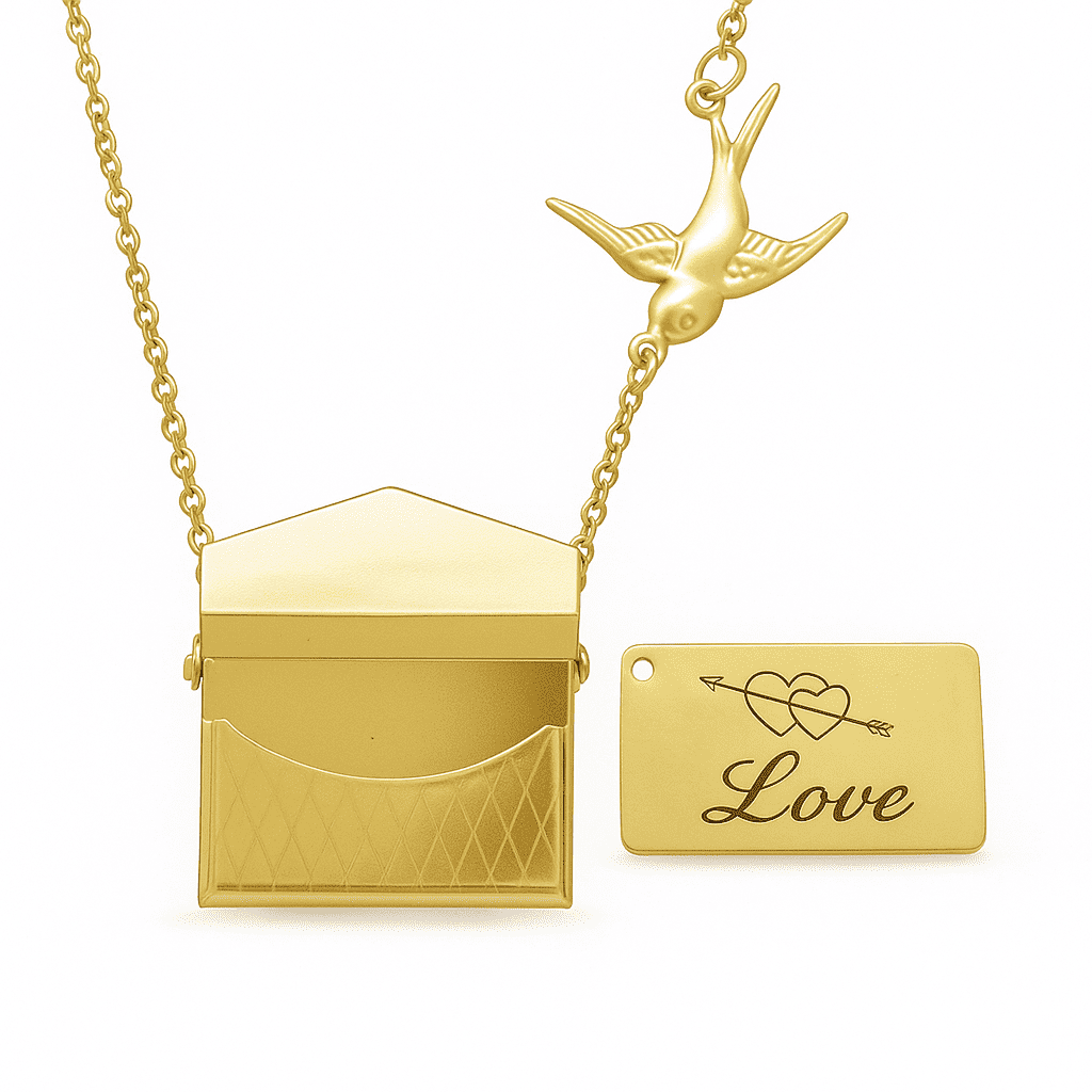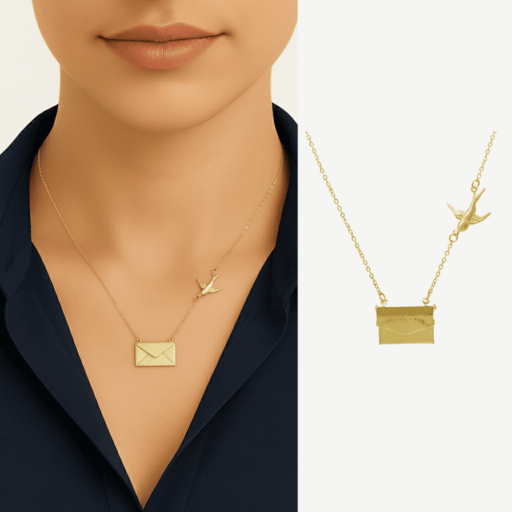 Kadın Çelik Kolye - Posta Güvercini Detaylı - Forse Zincirli - İsme Özel Yazılı - Altın Renk