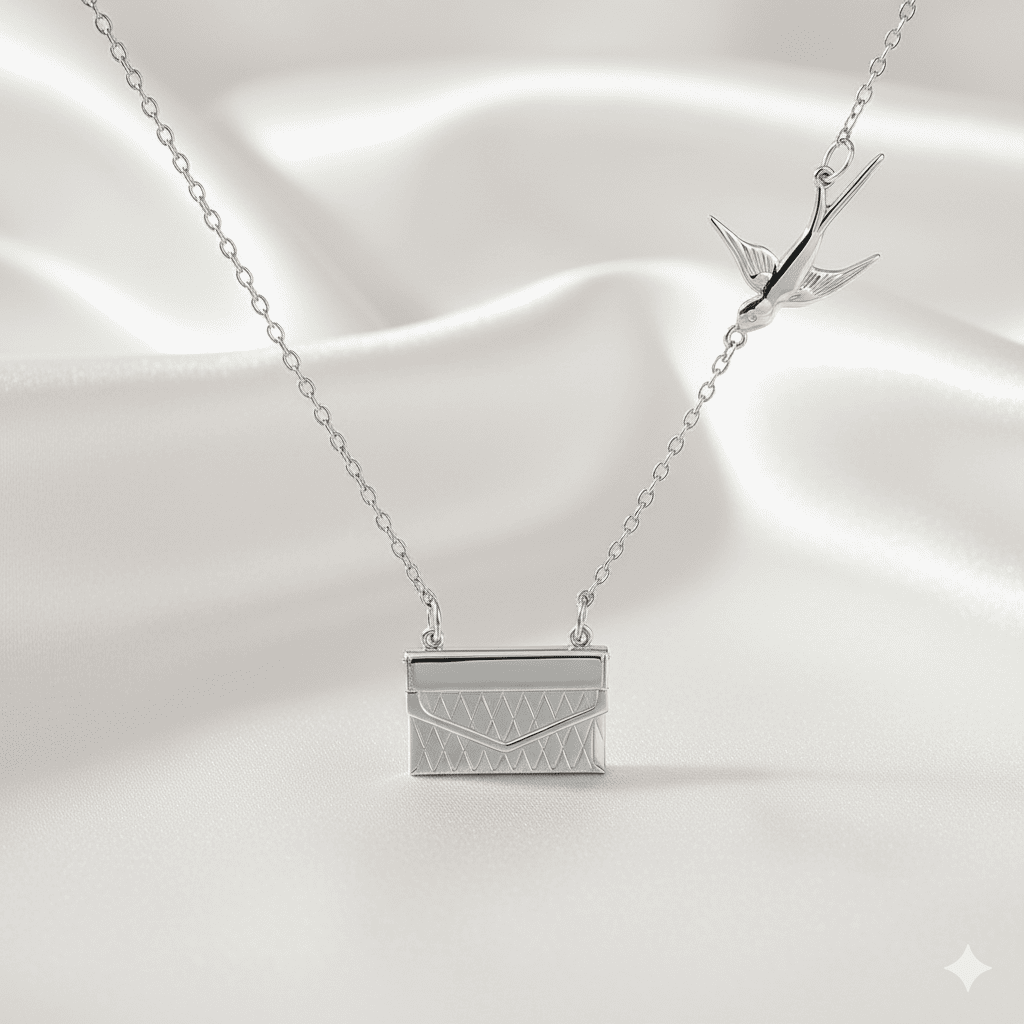 Kadın Çelik Kolye - Posta Güvercini Detaylı - Forse Zincirli - İsme Özel Yazılı - Gümüş Renk