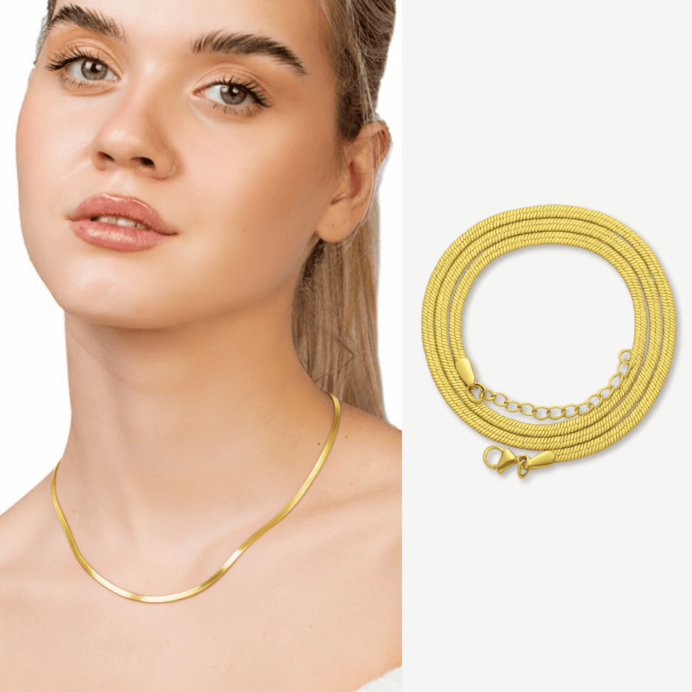 Kadın Çelik Zincir - Snake Model - Altın Renk - 40 cm Uzunluk - 3,3 mm Genişlik