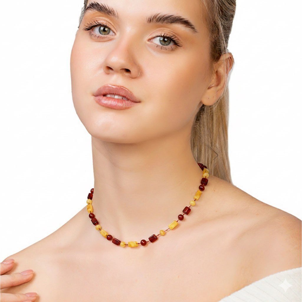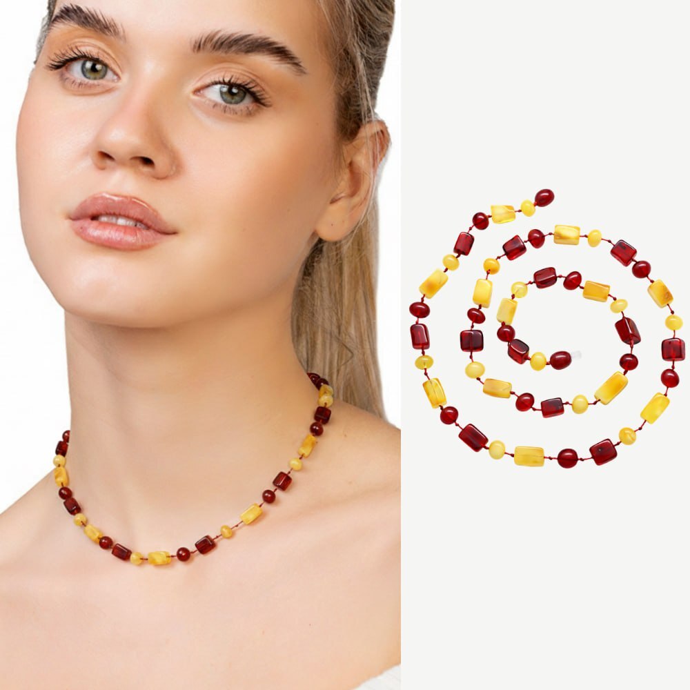 Kadın Hakiki Damla Kehribar Kolye - Doğal Form - Sarı Kırmızı Renk
