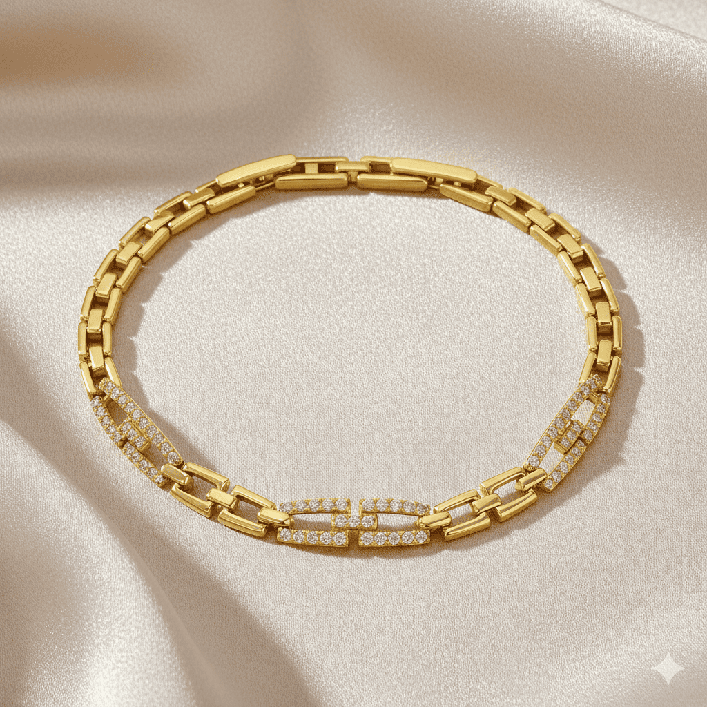 Kadın Tam Tur Xuping Bileklik - Altın Renk - Beyaz Zirkon Taşlı